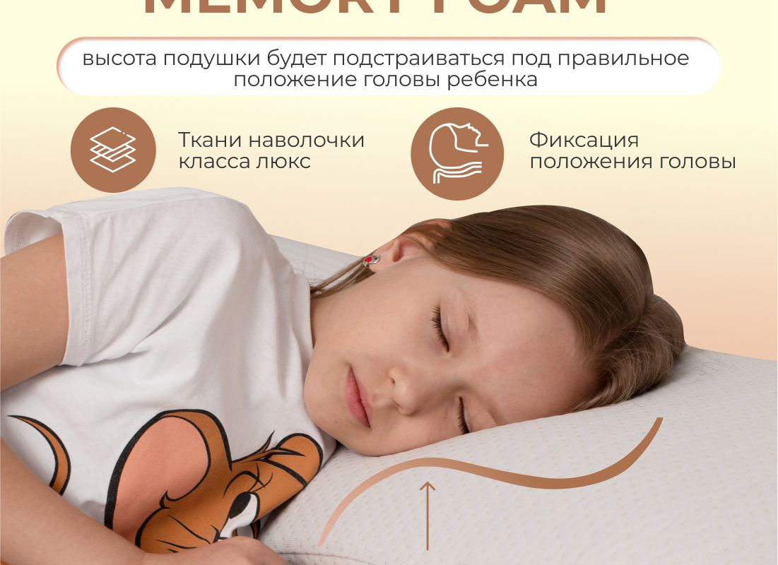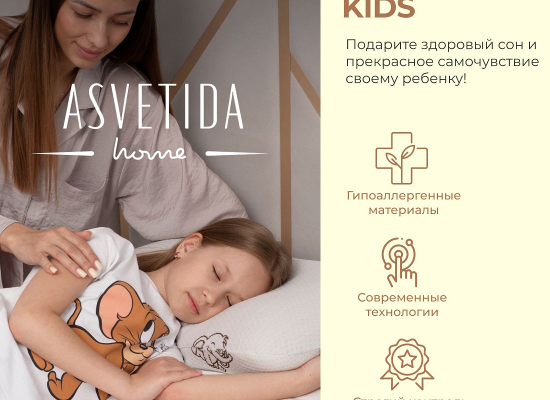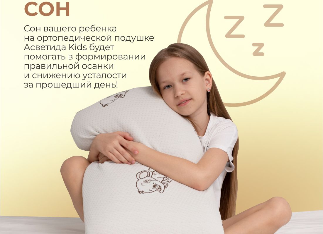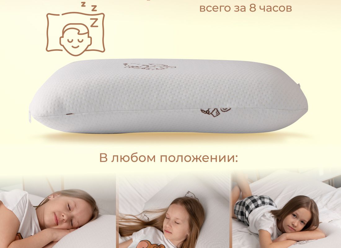 Подушка анатомическая с эффектом памяти модель Kids (40х60 см) – самая мягкая модель из всех представленных подушек Асветида. Создавалась и разрабатывалась специально для детей, подростков и школьников. Обеспечивает правильное положение головы и шеи для сна. Благодаря вспененной структуре наполнителя, анатомическая подушка эластичная, что способствует комфортному и здоровому сну Вашего ребенка. В составе пена с эффектом памяти – это инновационный материал, который называется пенополиуретан. Благодаря материалу «Мемори», или как его еще называют «Мemory Foam», мышцы шеи полностью расслабляются во время сна, а шейный отдел позвоночника остается в правильном положении. Анатомическая форма позволяет принять комфортное положение во время сна на боку, на животе или на спине. Абсолютно гипоаллергенная, так как она изготовлена из дышащих экологически чистых материалов. Благодаря этому поддерживается комфортная температура покрытия во время сна.