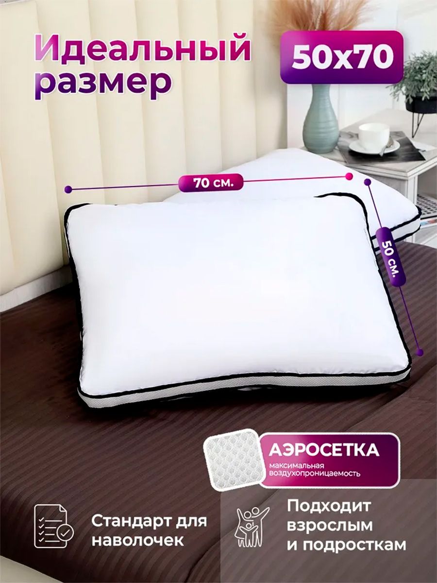 Подушка для сна 50х70 см (50*70) с аэросеткой гипоаллергенная, средняя жесткость – ваш комфортный сон каждую ночь!