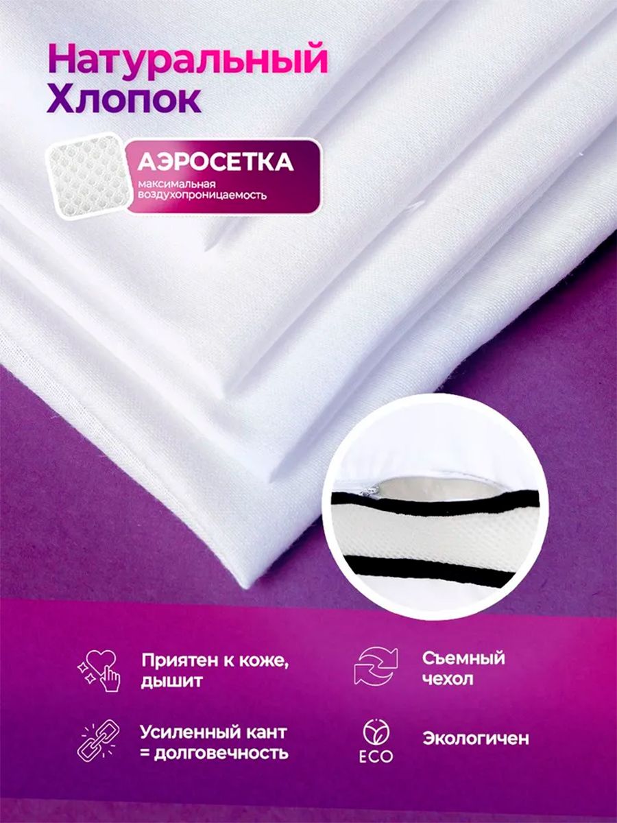 Подушка для сна 50х70 с аэросеткой, средняя жесткость, анатомическая, наполнитель 3D волокно, гипоаллергенная, съемный чехол из хлопка