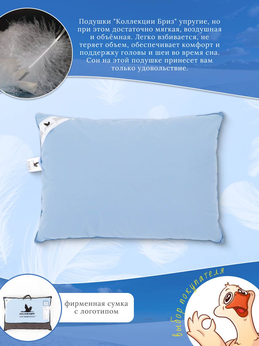 Наполнитель-пух первой категории, чехол с кантом, ткань тик 100%хлопок.Упаковка фирменная сумка. Подушки коллекции Бриз упругие, но при этом достаточно мягкие. Наполнены серым гусиным пухом, легко взбиваются, не теряют объём, обеспечивают комфорт и поддержку головы и шеи во время сна. Гусиный пух считается одним из самых престижных наполнителей для подушек, он обладает отличными теплоизоляционными свойствами и способен сохранять свою форму на протяжение длительного времени.