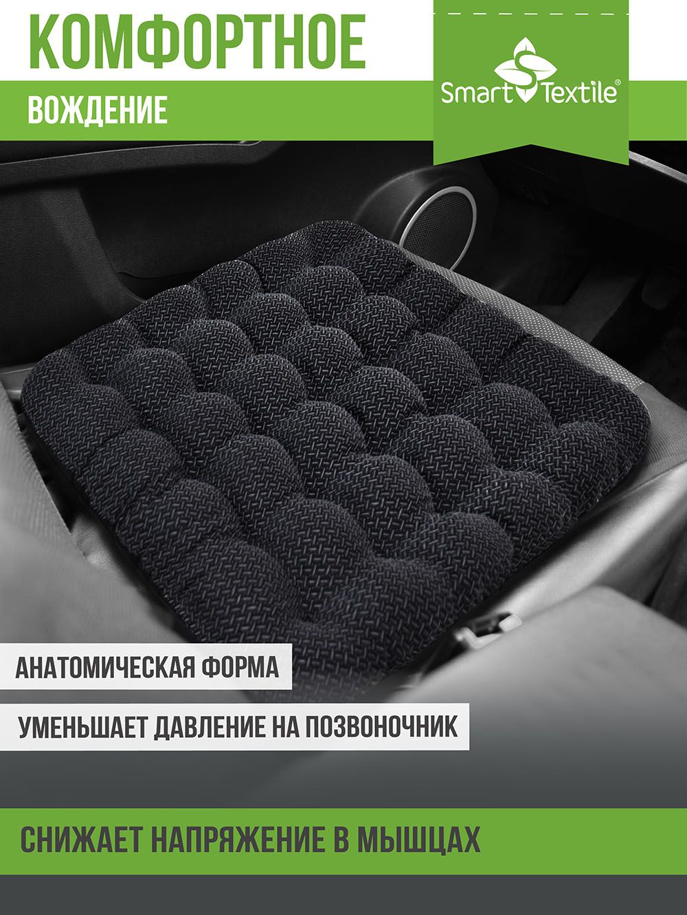 Уникальное ПВХ-покрытие подушки в виде елочки создает дополнительные преимущества. Рельефная поверхность не только деликатно воздействует на кожу, но и способствует хорошей циркуляции воздуха между телом и сиденьем, обеспечивая комфорт в любое время года.