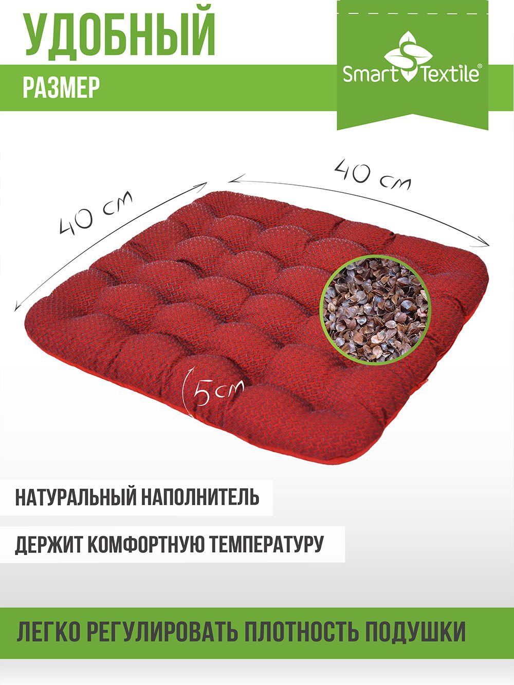 Подушка на стул или кресло «Уют-Премиум» наполнена лепестками лузги гречихи, которые придают ей анатомические свойства и способность подстраиваться под контуры тела, равномерно распределяя нагрузку и снижая напряжение в мышцах.