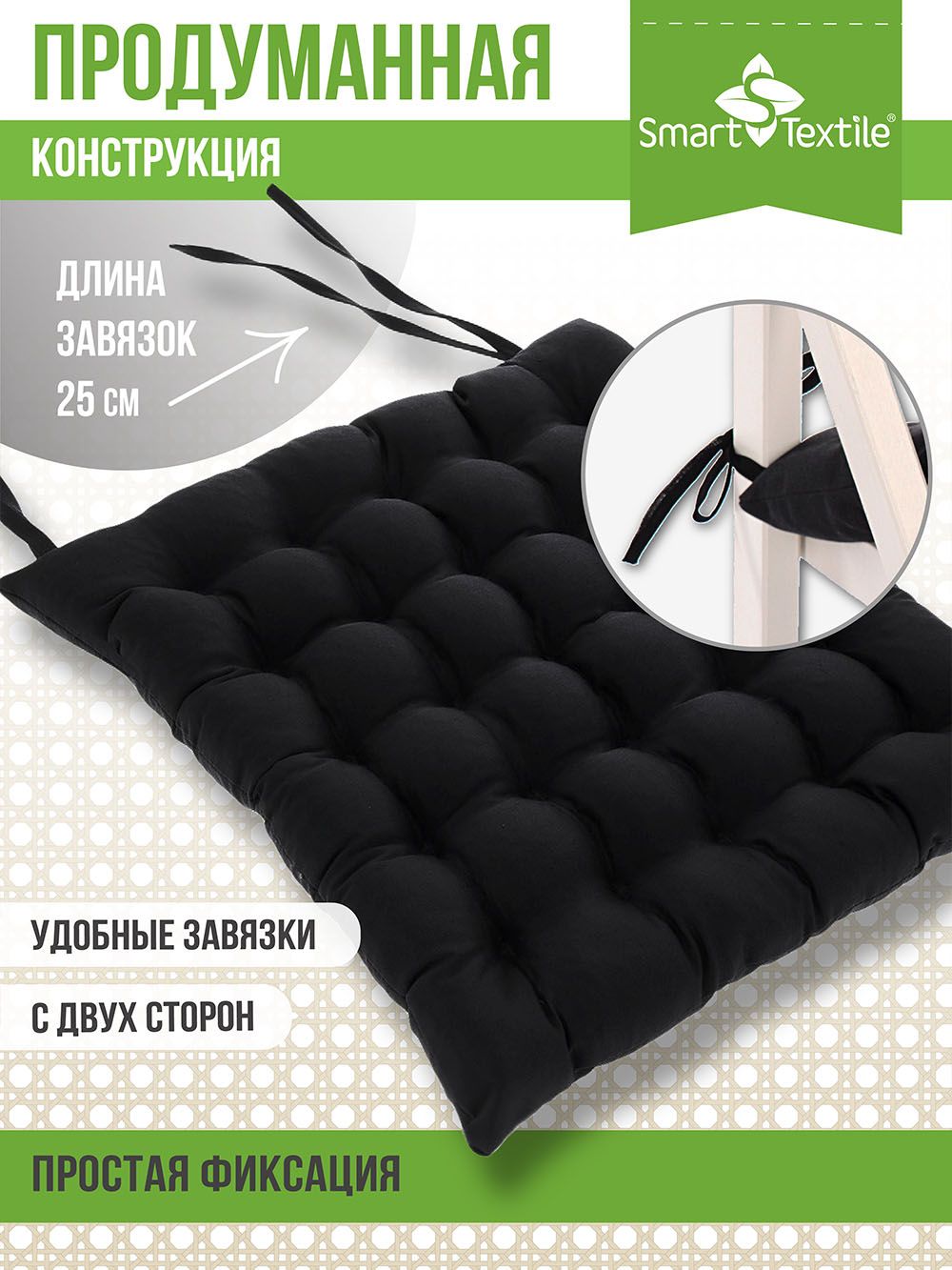 Подушка на сиденье Уют с завязками, р.40х40см - черный