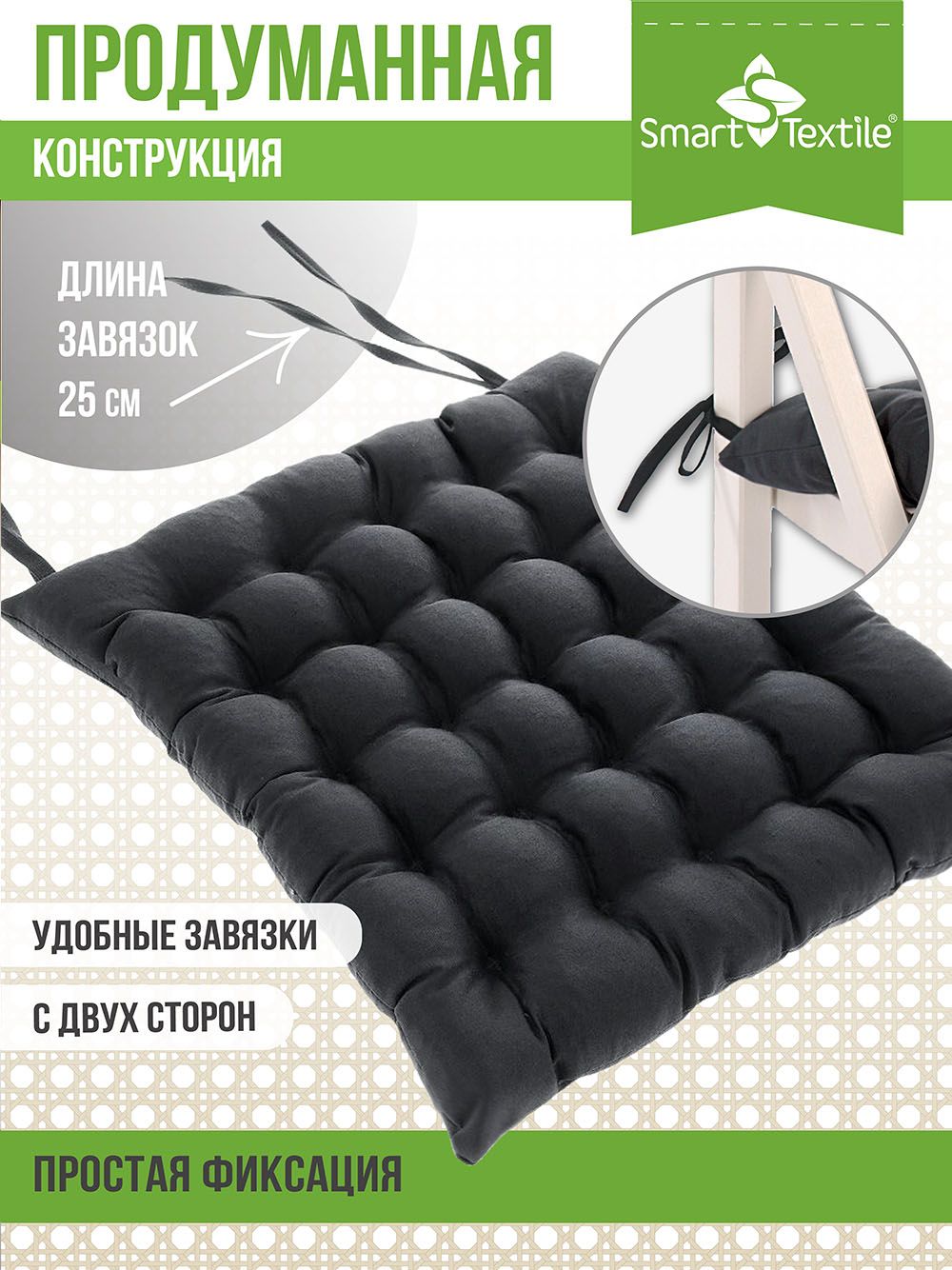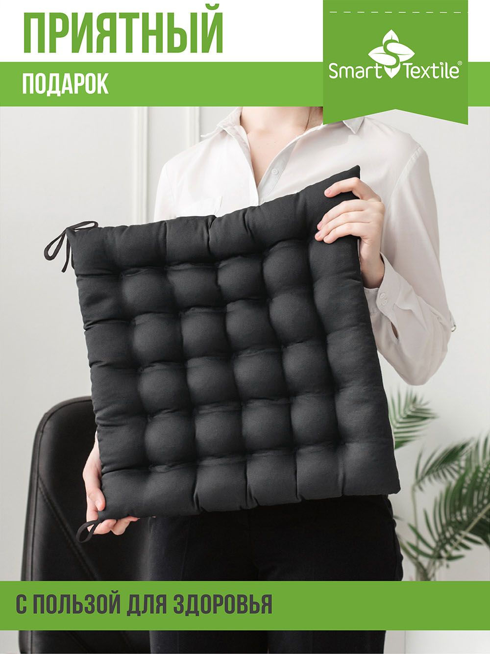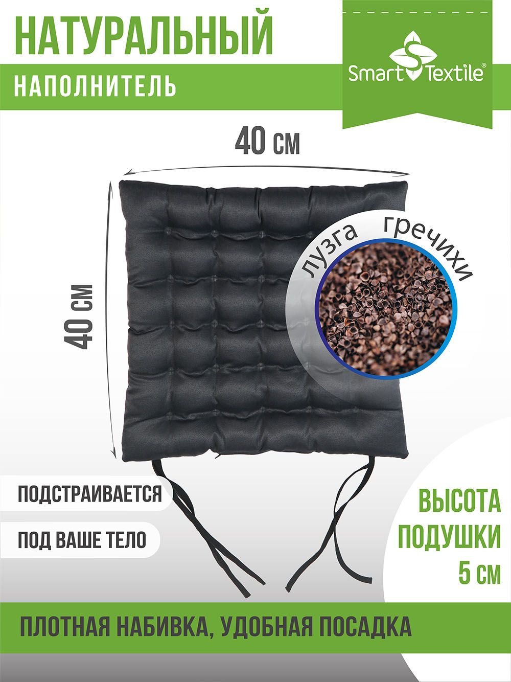 Благодаря форме пошива в виде объемных ячеек и уникальным природным свойствам наполнителя из лузги гречихи, сидеть на такой подушке удобно и полезно. С завязками для стула. Чехол: смесовая ткань. Наполнитель: лузга гречихи.