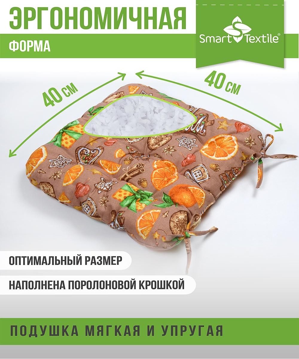 Практичные и яркие сидушки из качественной, натуральной рогожки 100% хлопок, наполнитель: поролоновая крошка. В производстве используются качественные и экологичные импортные красители позволяющие сохранить яркость рисунка при многократных стирках.