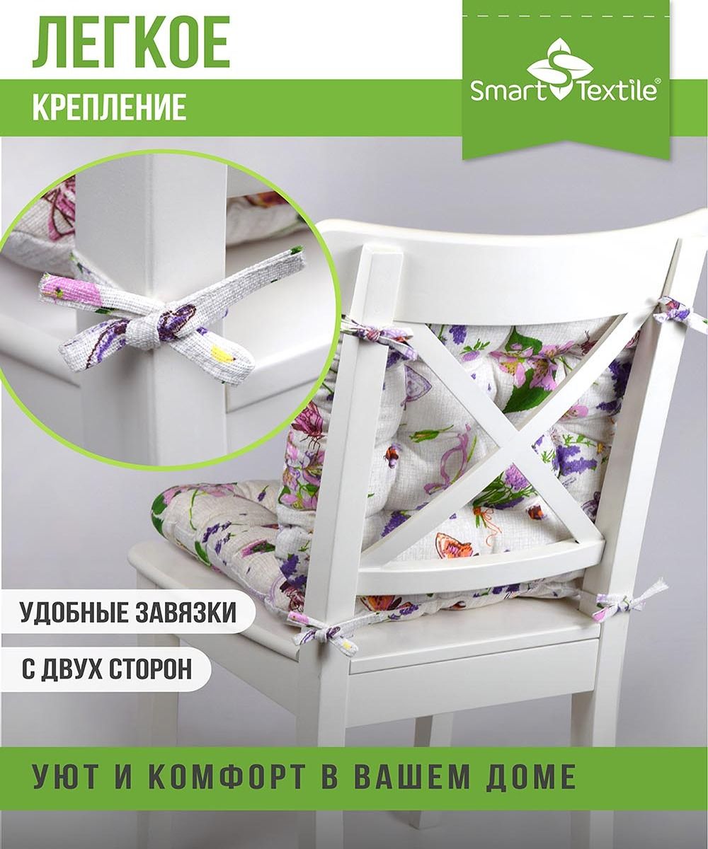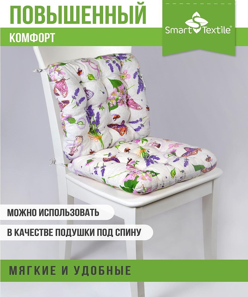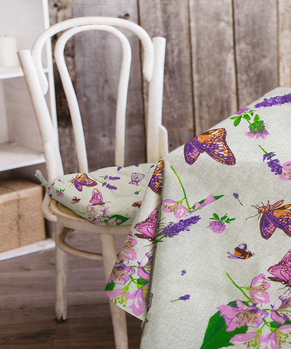 Подушка на стул из рогожки 40*40см - лавандовый букет