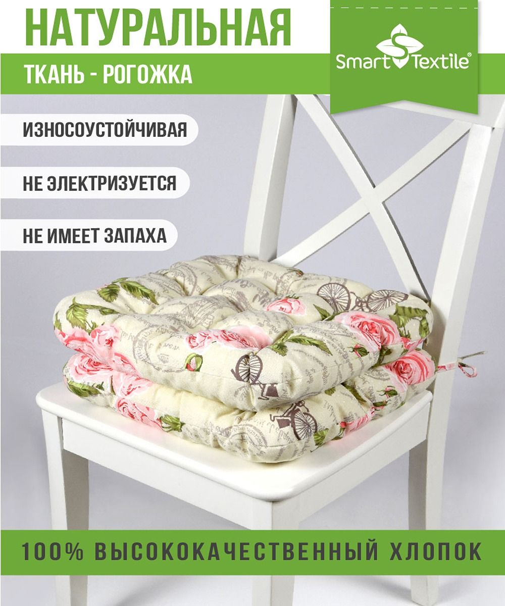 Практичные и яркие сидушки из качественной, натуральной рогожки 100% хлопок, наполнитель: поролоновая крошка. В производстве используются качественные и экологичные импортные красители позволяющие сохранить яркость рисунка при многократных стирках.