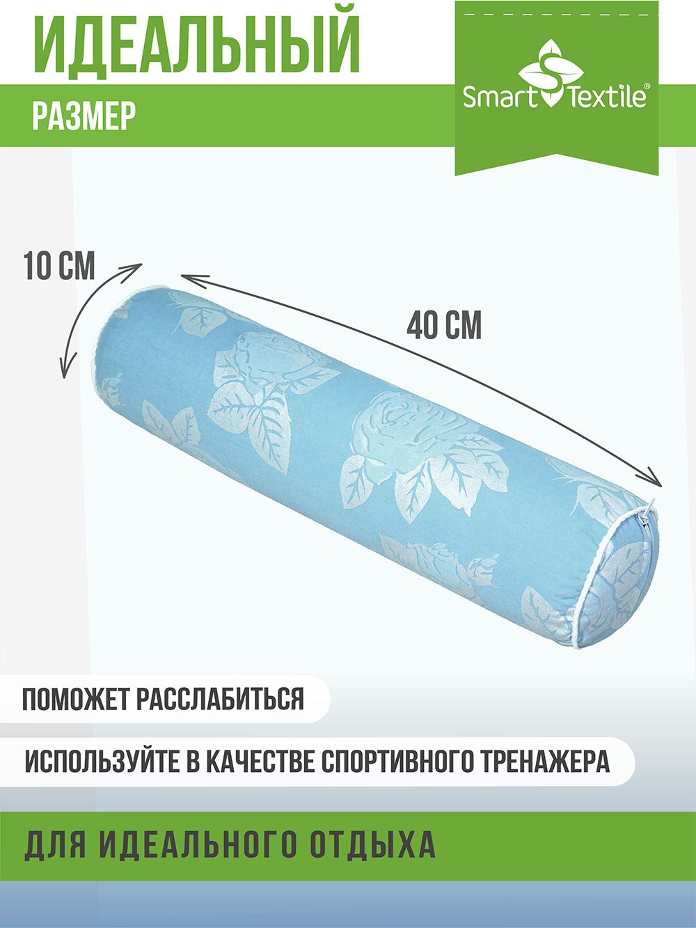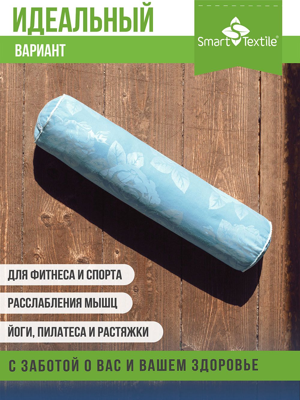 Подушка Валик с лузгой гречихи. Размер 40х10 см Чехол: смесовой тик. - голубой