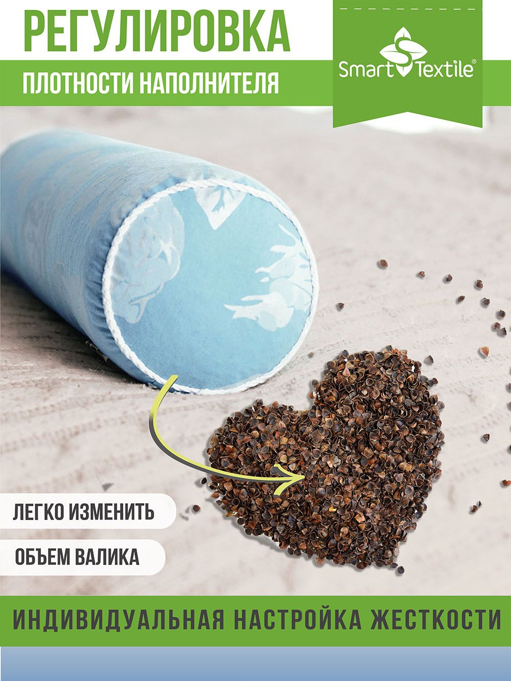 Подушка Валик с лузгой гречихи. Размер 40х10 см Чехол: смесовой тик.