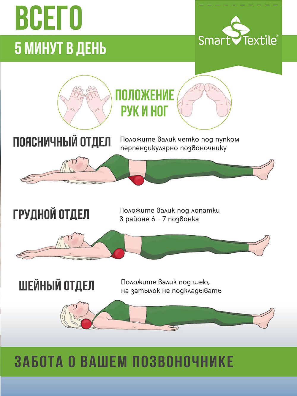 Анатомические подушки в форме валика – незаменимые принадлежности для полноценного отдыха. Оказывают поддержку позвоночника в шейном отделе и в области поясницы. Валик, расположенный под коленями или стопами, способствует снятию напряжения с уставших мышц ног. Поддержание позвоночника в правильном положении в области шеи во время отдыха обеспечивает профилактическое воздействие на заболевания шейно-воротниковой зоны, такие как шейный остеохондроз. Поддержка естественных изгибов позвоночника, а также коленных и голеностопных суставов, способствует снятию напряжения, расслаблению мышц, уменьшению болевых ощущений, улучшению качества отдыха.