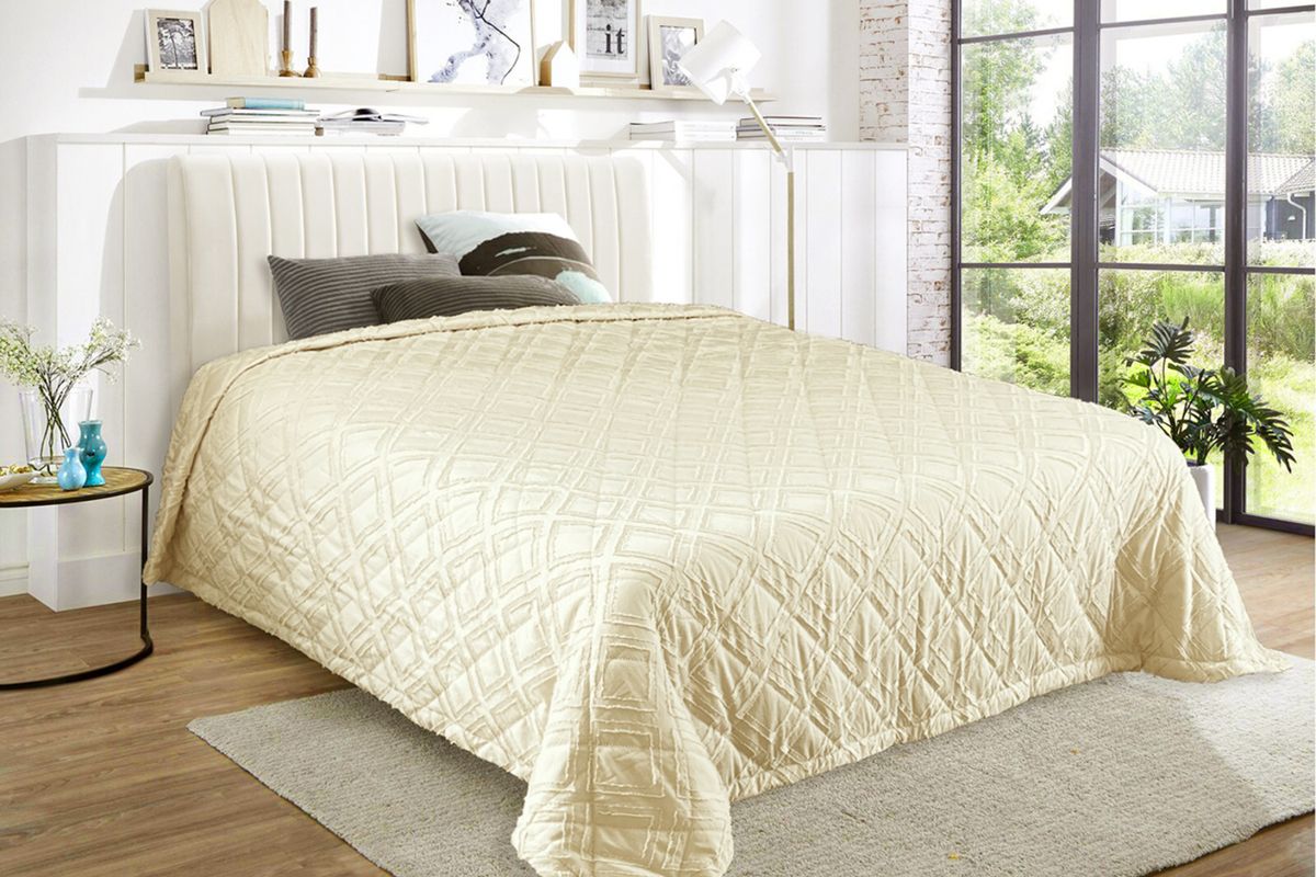 Покрывало на кровать с декоративной отделкой - это не просто предмет декора, а настоящее произведение искусства, призванное украсить и сделать уютным любую спальню. Пышное и мягкое покрывало создаст атмосферу комфорта и уюта, придавая интерьеру особый шарм и шик. Верхняя часть покрывала выполнена из полисатина с жаккардовым декоративным элементом, нижняя часть покрывала из "мытого" полисатина, с прослойкой синтепона в средней части (технология ультрастеп).