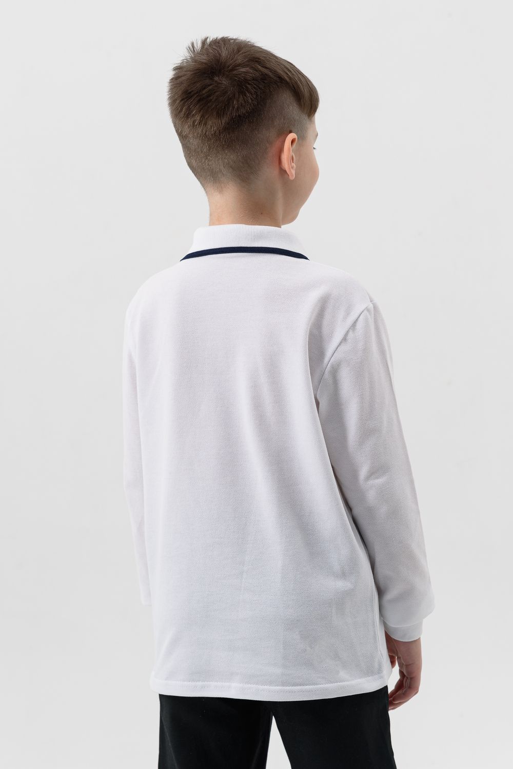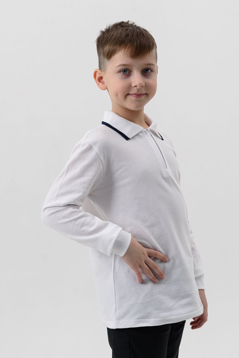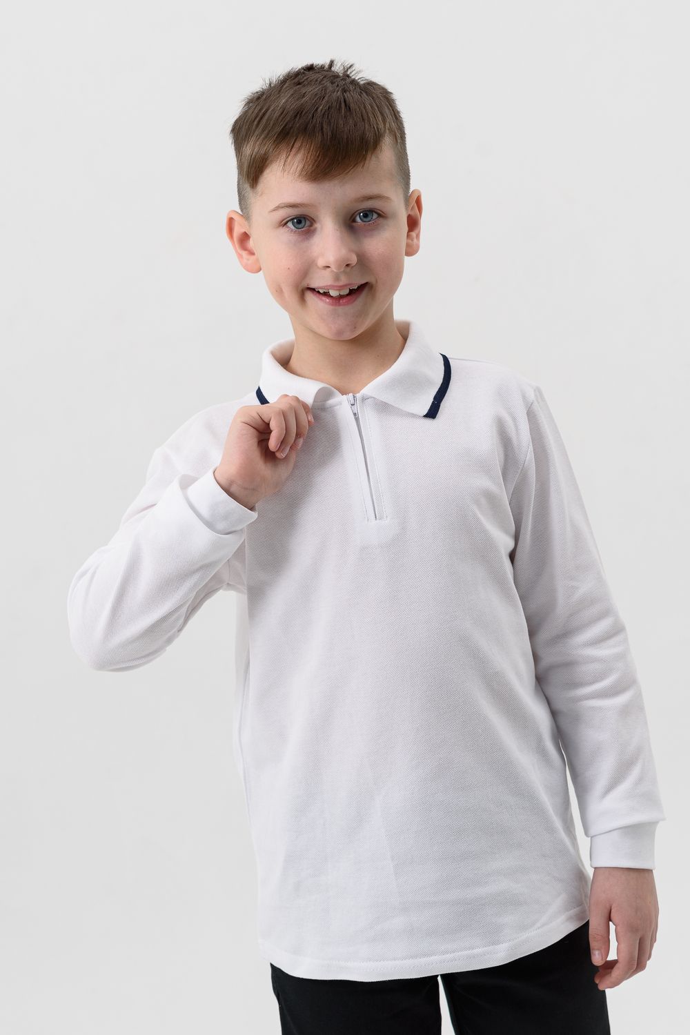 Поло Молния Контур длинный рукав детское - белый/т.синий
