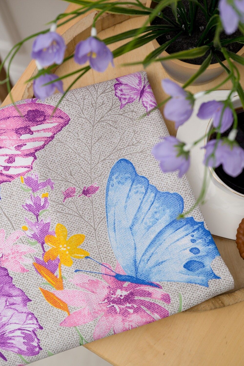 Полотенце Бабочки и цветы купон - серый