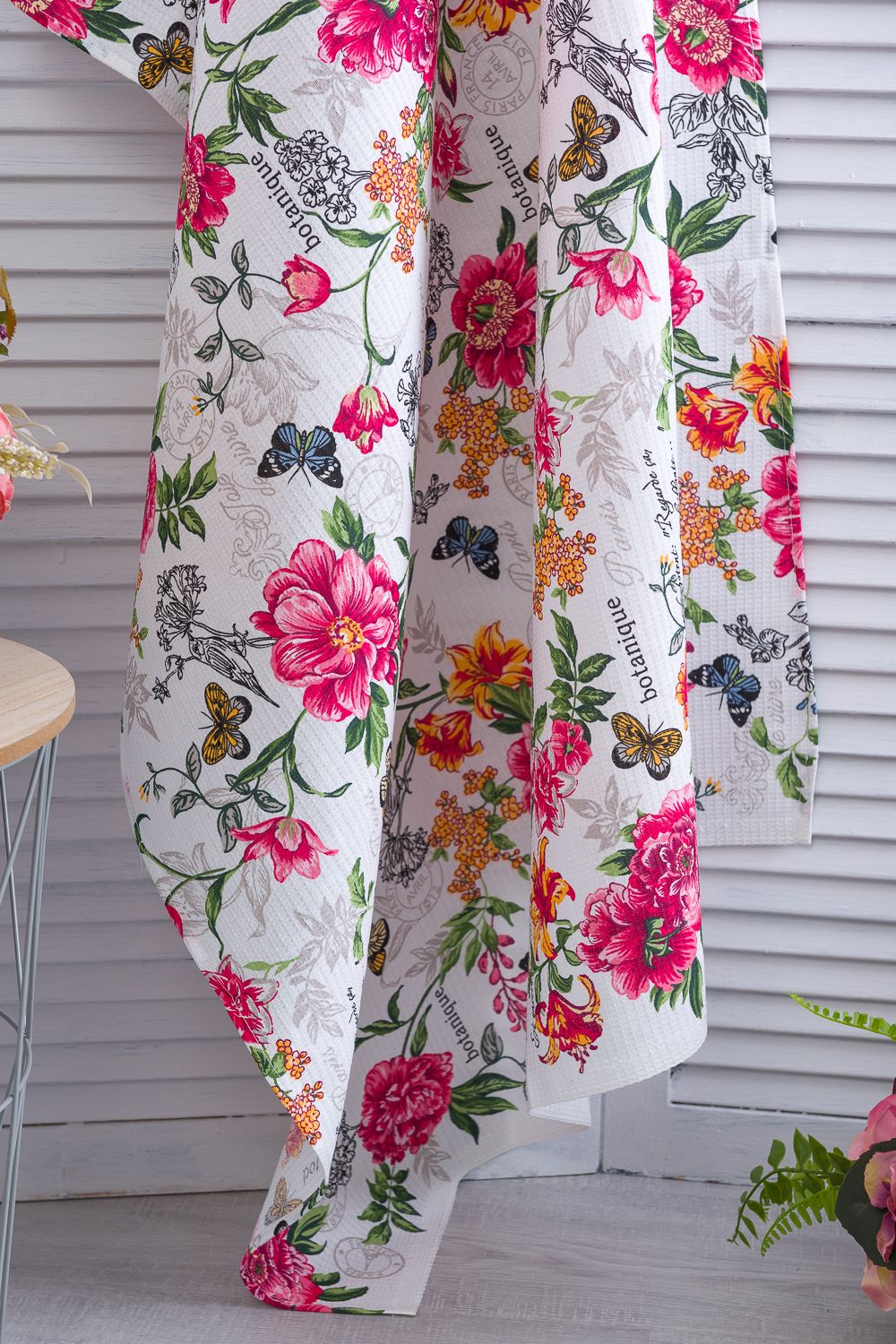 Большое банное полотенце размером 150*80 см станет незаменимым аксессуаром для вашей ванной. Благодаря большому размеру в полотенце можно полностью завернуться и оно быстро впитает всю влагу. А современный дизайн будет радовать глаз. Яркие цветы и красивые надписи отлично гармонируют с белым фоном вафельного полотна.