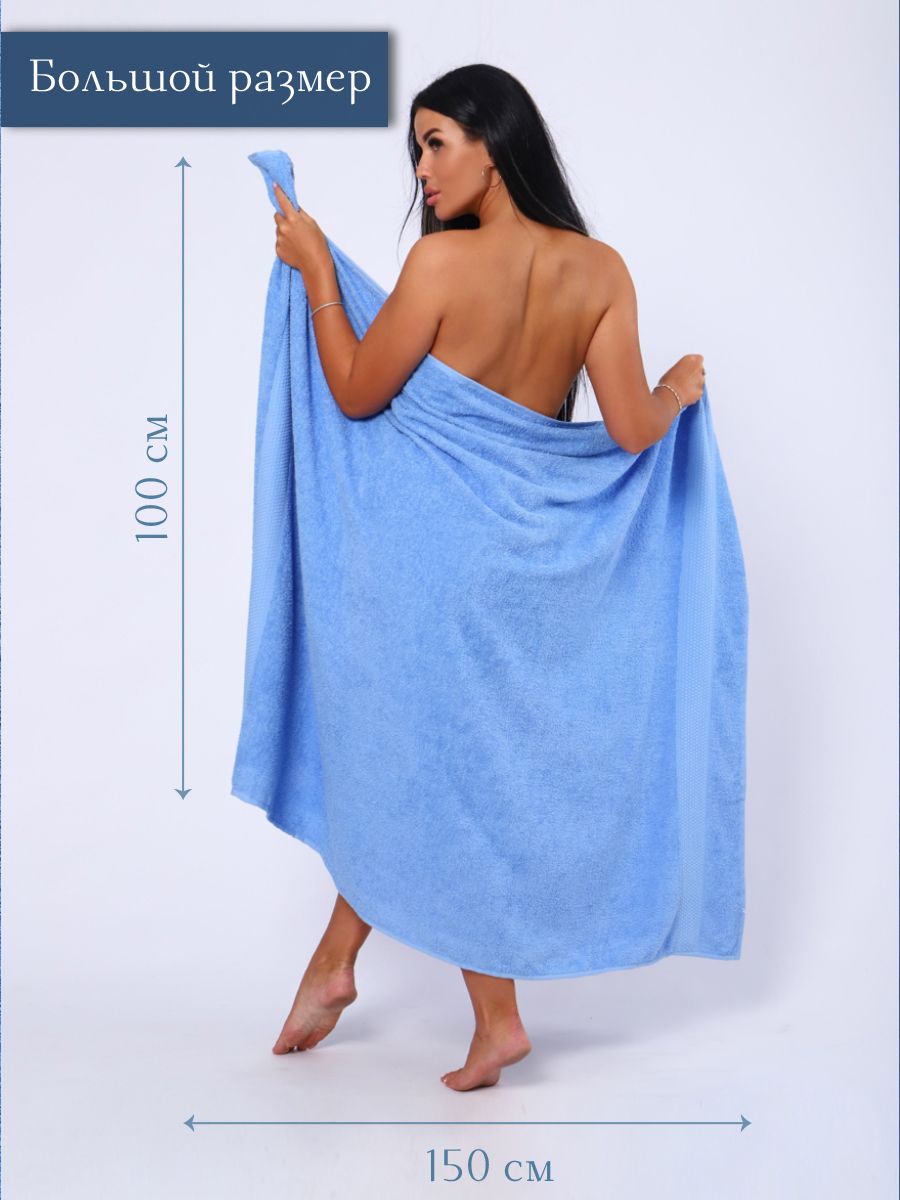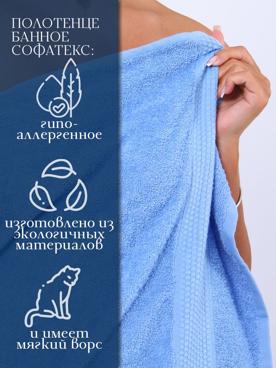 Полотенце махровое банное большое Софатекс 100 * 150 для ванной и бани bs - голубой
