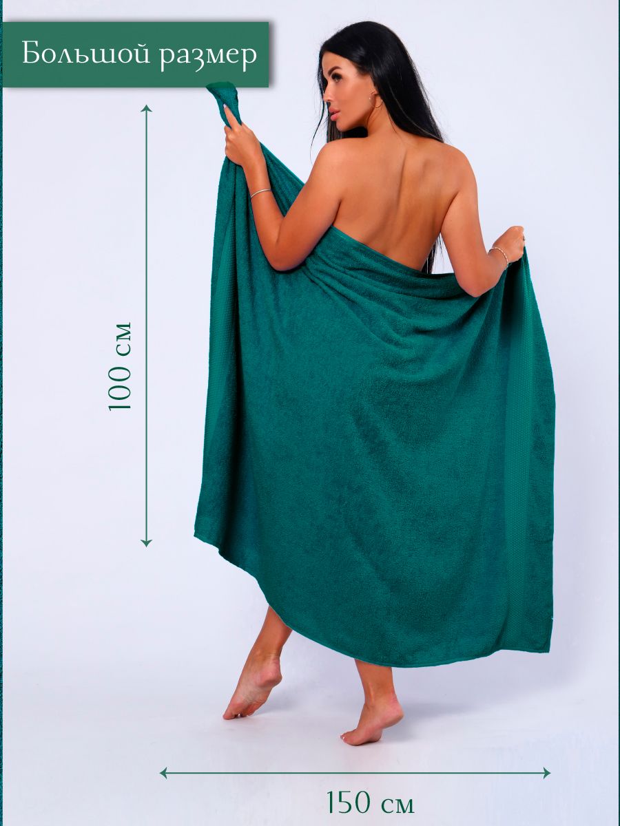 Полотенце махровое банное большое Софатекс 100 * 150 для ванной и бани bs - зеленый