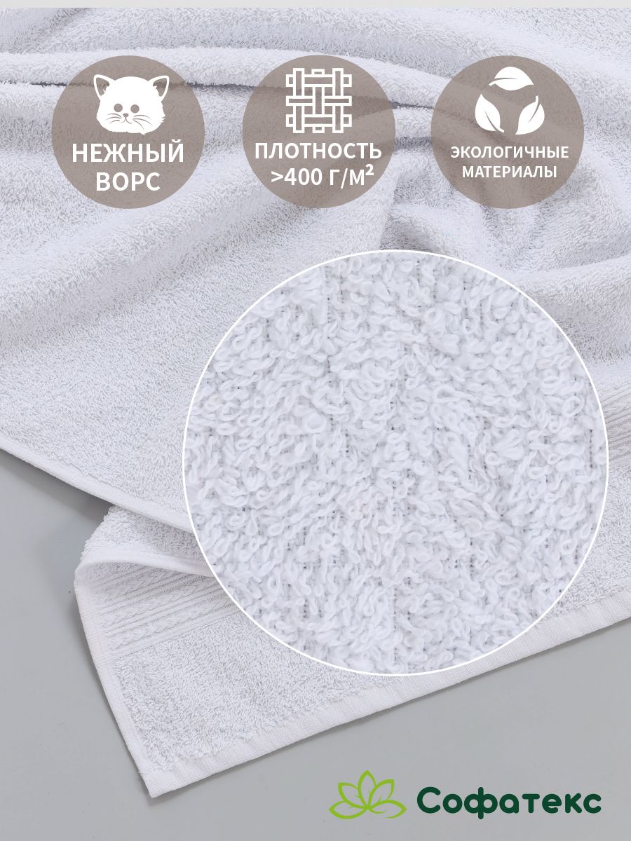 Полотенце махровое банное большое Софатекс 100 * 180 для ванной и бани bs - белый