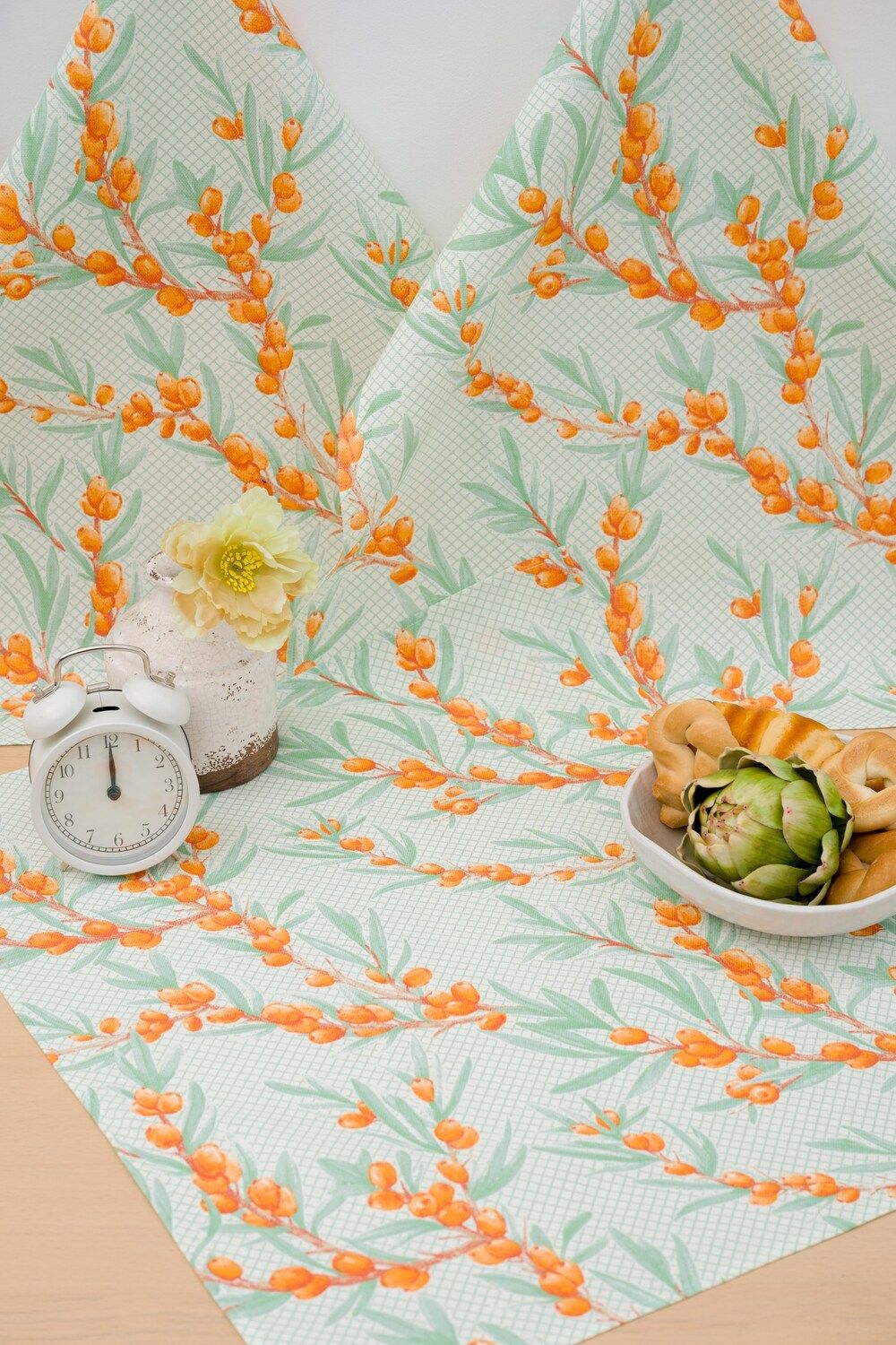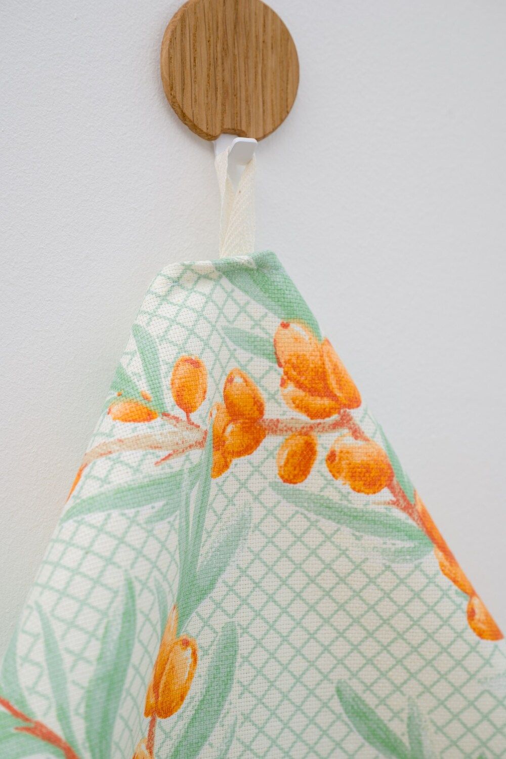 Полотенца с петелькой легко повесить на крючок или ручку, что делает их удобными в использовании. Рисунок веточек облепихи придает им особый шарм и делает их отличным подарком для любого случая.