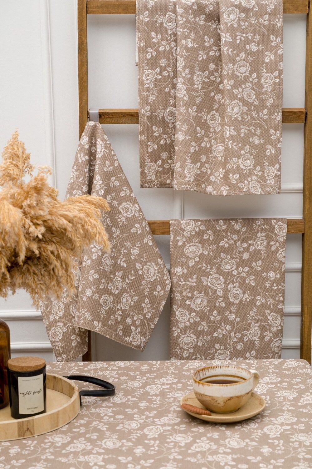 Этот набор кухонных полотенец с розами на льне - идеальное дополнение к вашей кухне. Изготовленные из материала рогожка и 100% хлопка, эти полотенца обеспечат вам надежность и удобство в использовании. С размером 60*48 см и 3 штуками в наборе, эти полотенца идеально подойдут для любых кулинарных задач. Благодаря петельке на каждом полотенце, их легко повесить и хранить, что делает их еще более удобными в использовании. Белые розы на коричневом фоне придают этим полотенцам изысканный вид, который дополнит любой интерьер вашей кухни.