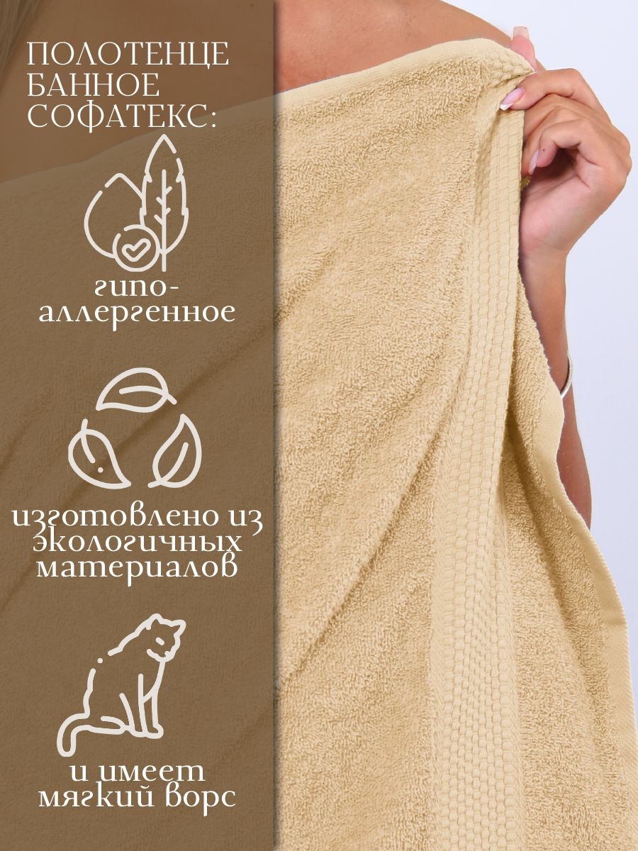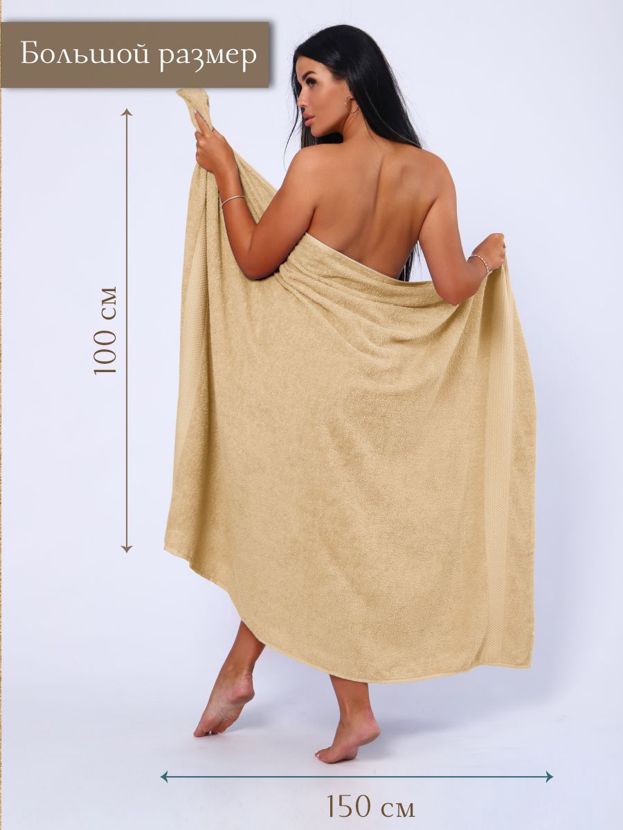 Полотенце махровое банное большое Софатекс 100 * 150 для ванной и бани bs - бежевый