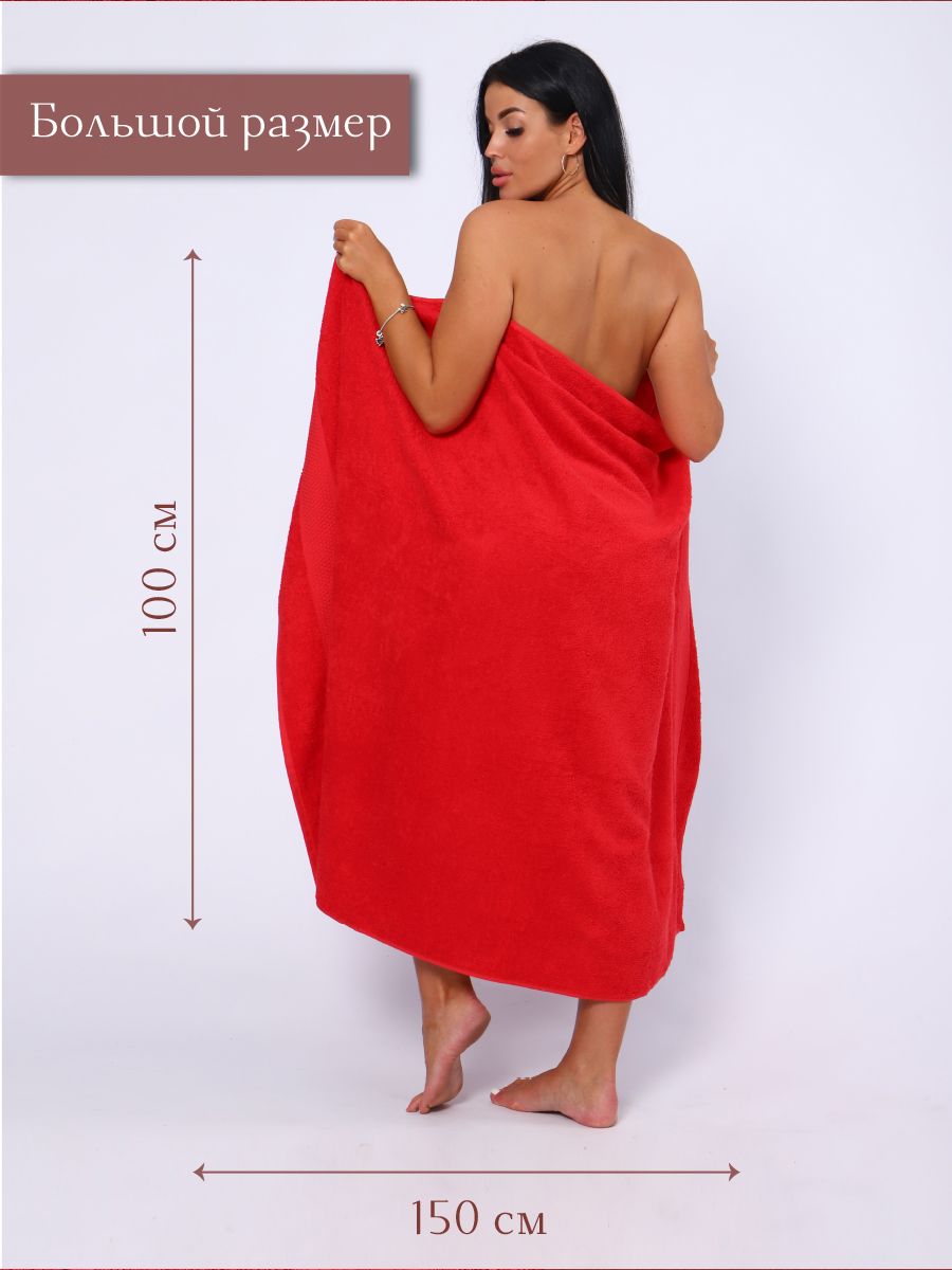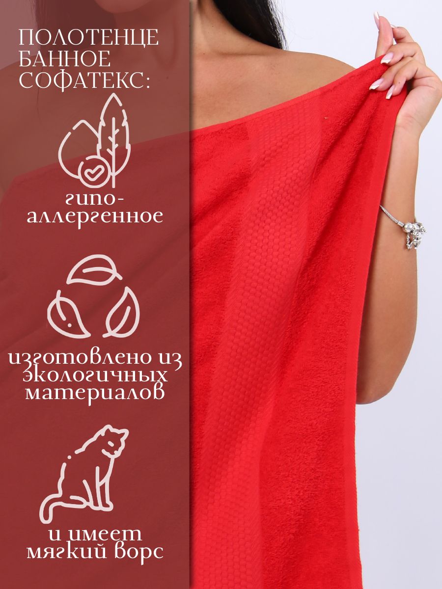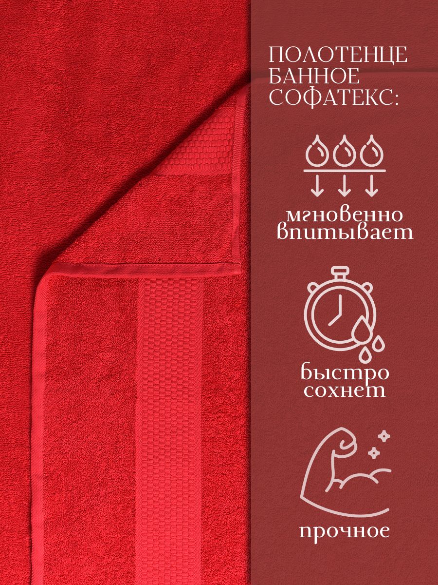 Полотенце махровое банное большое Софатекс 100 * 150 для ванной и бани bs - красный