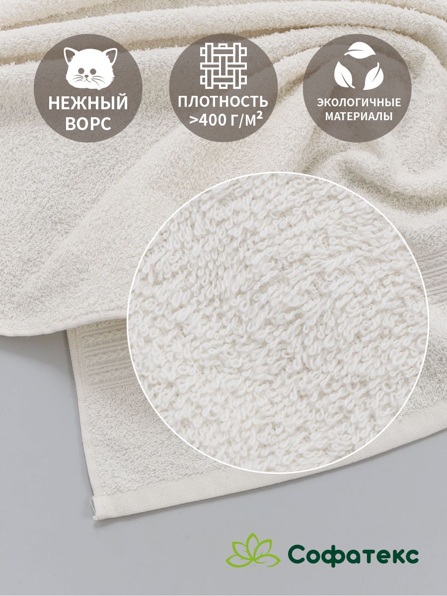 Полотенце махровое банное большое Софатекс 100 * 180 для ванной и бани bs - кремовый