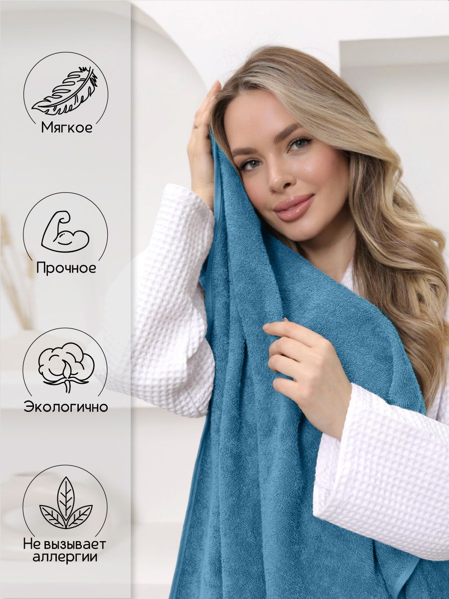 Полотенце махровое банное большое Софатекс 70 * 140 для ванной и бани bs - морская волна
