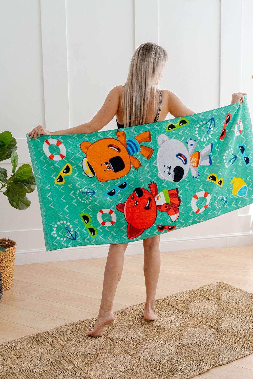 Полотенце пляжное махровое 70*140, 100 % хлопок, Ми-ми-мишки праздник