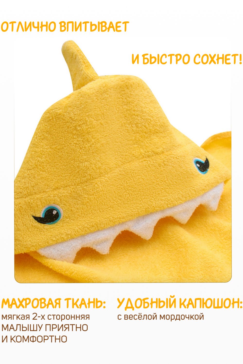 Милое детское махровое полотенце изготовлено из мягкого хлопка, который подходит для новорожденных, не вызывает аллергии и отлично впитывает влагу. Уголок с ушками — это идеальный вариант для ухода за младенцем. Гипоаллергенный материал с натуральным хлопком в составе быстро сохнет и не вызывает раздражения чувствительной кожи лица и тела. Полотенце с капюшоном большого размера в форме прямоугольника 75х120 см для детей с рождения до 5-6 лет позволяет укутать малыша полностью с макушки до пяточек. Текстильное изделие имеет капюшон, украшенный декоративной вышивкой. Удобный несъемный капюшон с забавной мордочкой держит тепло и помогает быстро высушить волосы. Этот банный аксессуар с оригинальным дизайном понравится всем членам семьи! С ярким смешным полотенцем с мордочкой животных кроха будет с удовольствием умываться и мыть руки самостоятельно. Его можно использовать каждый день как большое полотенце для купания в ванной и душевой кабине или для спортивных занятий по плаванию в бассейне. Подходит как крестильное полотенце, уголок сыну и дочери, любимому крестнику. Применяется как детский плед, хлопковое покрывало в кроватку и коляску, накидка для пляжа от солнечный лучей. Универсальное быстросохнущее полотенце-уголок понравится детям, подросткам и девушкам. Подойдет для ног, его можно повязать в виде тюрбана чалмы после мытья головы и душа дома или в бане. Полотенце для мальчика и девочки подходит всем, кто подбирает товары для новорожденных, памятный подарок молодой будущей маме, молодым родителям на рождение дочки и сыночка, на годик, крестины малыша, девочке на 8 марта, мальчику на 23 февраля, на именины, новоселье, подруге, сестре, внуку, внучке. Это многофункциональный предмет и незаменимый помощник для мамочек и детей для повседневного пользования. Красивый подарок на выписку из роддома для грудничка. Упаковка товара – плотная прозрачная сумка с ручками. Производитель ткани для уголков - фабрика "Донецкая Мануфактура".