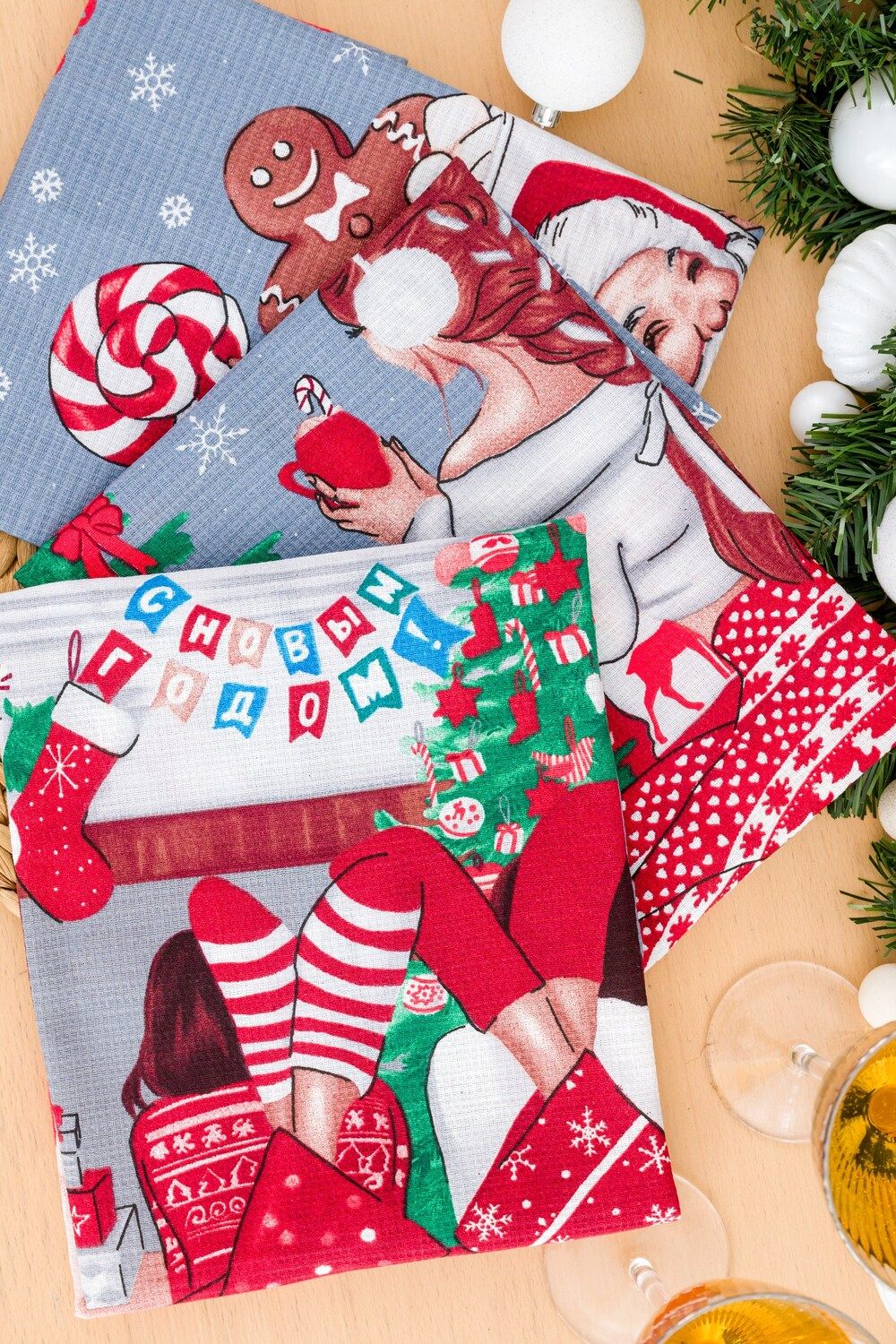Серый цвет кухонных полотенец с новогодним принтом делает их не только практичными, но и стильными аксессуарами для вашей кухни. Кроме того, полотенца красиво упакованы в прозрачный пакет, что делает их отличным выбором для подарка на Новый год.