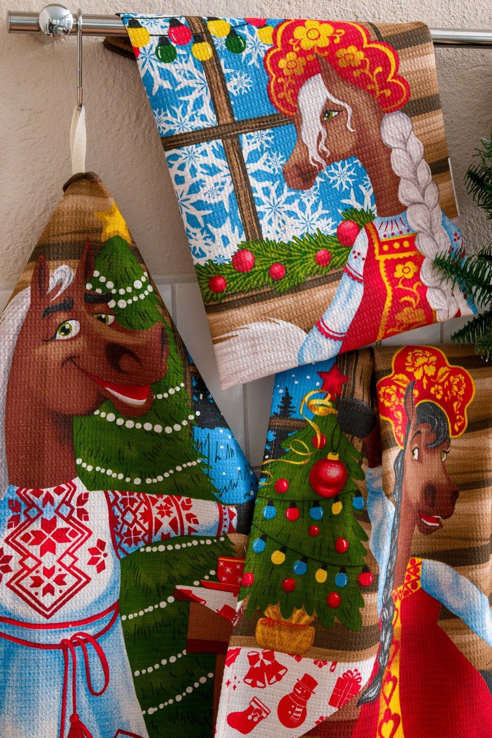 Новогодний Набор Кухонных Полотенец "Веселые Лошадки" – Ваш Идеальный Подарок к Году Лошади!
