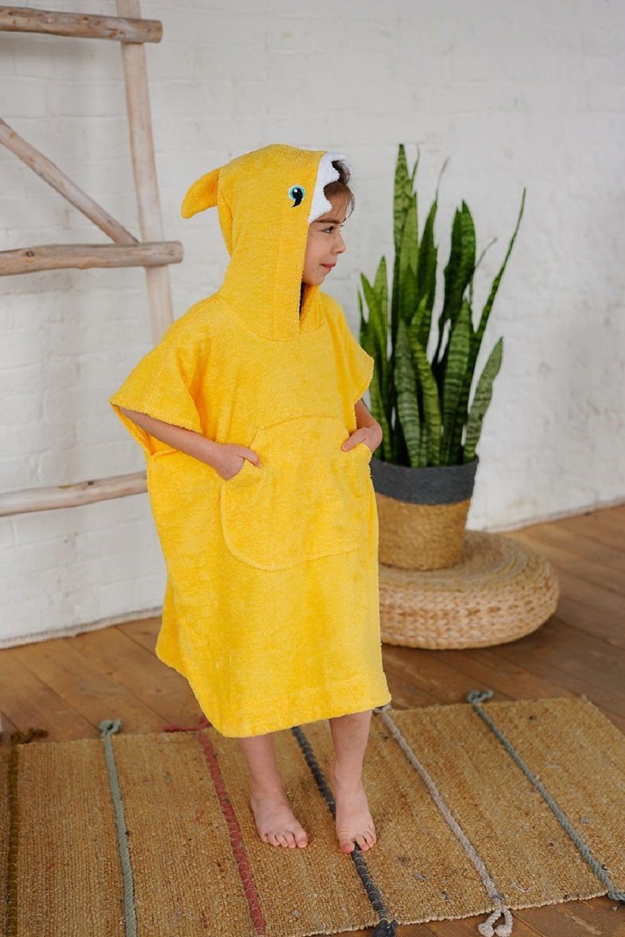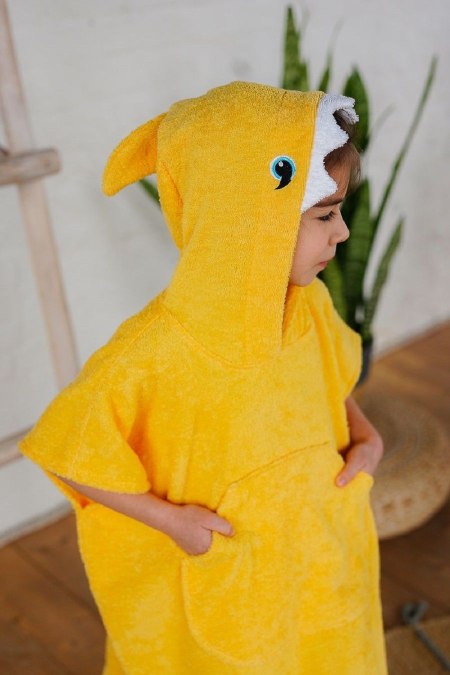 Детское махровое полотенце-халат в стиле пончо с капюшоном для мальчика или девочки в универсальном размере (на рост 98-122 см). Идеально после ванны, душа, уроков плавания в бассейне и в качестве банного полотенца дома, на пляже и в аквапарке. Для изготовления детского халатика используется качественная 100% махра - изделие максимально безопасно для нежной детской кожи. Банная накидка для малышей выполнена цельнокроеной - просто наденьте ее через голову и позвольте ребенку насладиться мягкостью и теплом натурального хлопка! В отличие от обычного полотенца пончо не сковывает движения, кроха может играть и веселиться сразу же после водных процедур. Яркие расцветки и декоративные элементы в виде аппликаций с мордочками забавных зверят на капюшоне вызывают у ребенка положительные эмоции и поднимают настроение у всех членов семьи. Пончо из махры может стать запоминающимся подарком дочке, сыночку, внучке или внуку к любому празднику! Упаковано в плотную прозрачную сумку с ручками и на молнии. Дизайны на выбор: Голубой Зайка, Желтая Акула, Розовый Единорог, Синяя Акула.