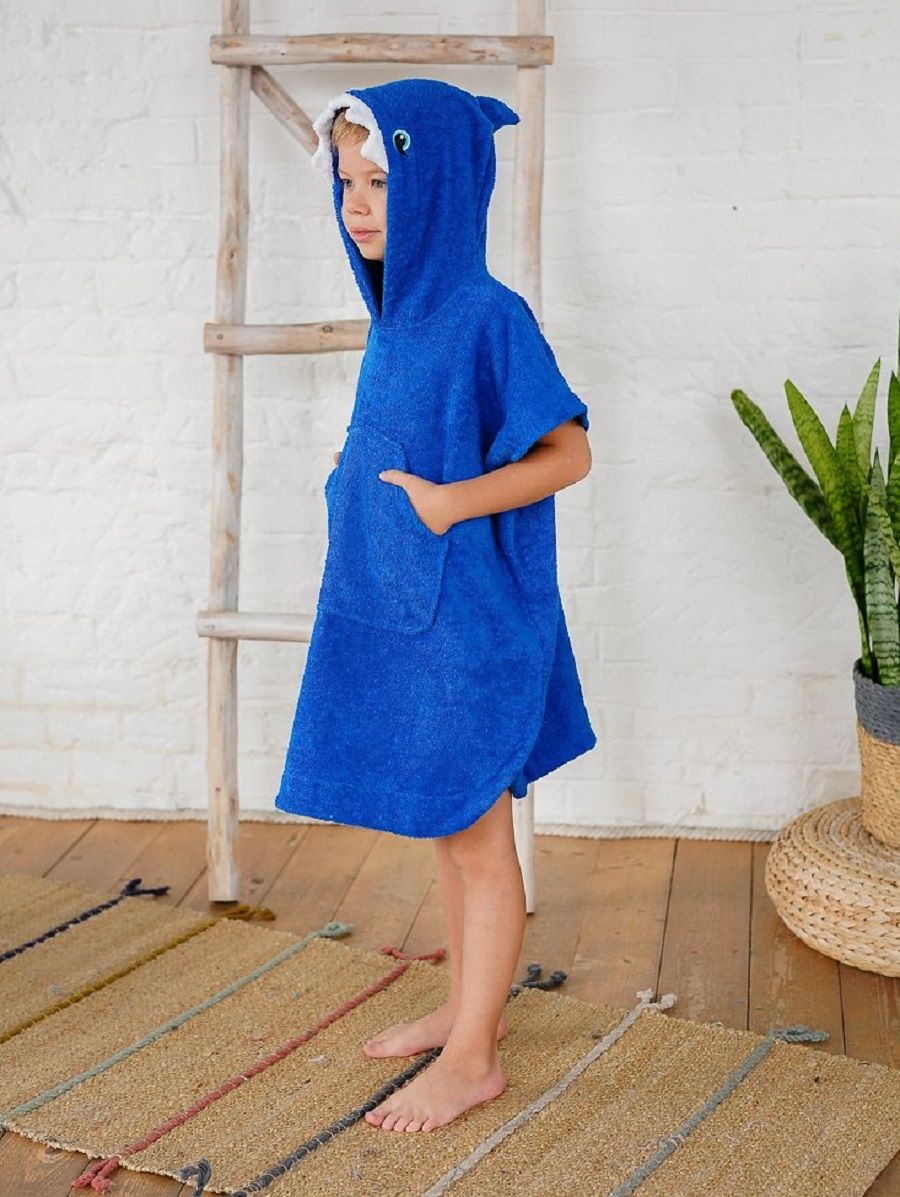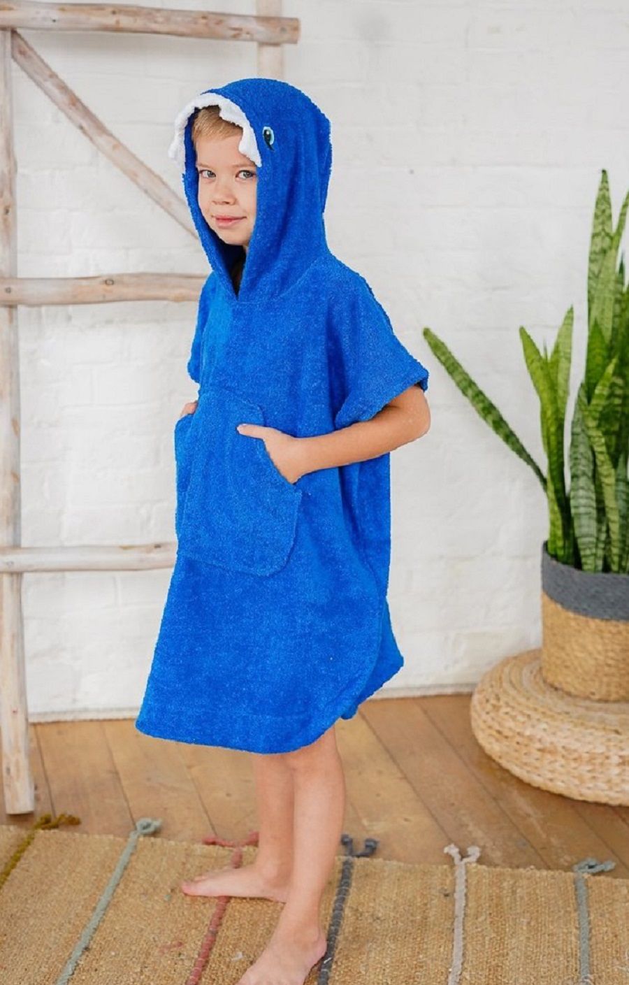 Детское махровое полотенце-халат в стиле пончо с капюшоном для мальчика или девочки в универсальном размере (на рост 98-122 см). Идеально после ванны, душа, уроков плавания в бассейне и в качестве банного полотенца дома, на пляже и в аквапарке. Для изготовления детского халатика используется качественная 100% махра - изделие максимально безопасно для нежной детской кожи. Банная накидка для малышей выполнена цельнокроеной - просто наденьте ее через голову и позвольте ребенку насладиться мягкостью и теплом натурального хлопка! В отличие от обычного полотенца пончо не сковывает движения, кроха может играть и веселиться сразу же после водных процедур. Яркие расцветки и декоративные элементы в виде аппликаций с мордочками забавных зверят на капюшоне вызывают у ребенка положительные эмоции и поднимают настроение у всех членов семьи. Пончо из махры может стать запоминающимся подарком дочке, сыночку, внучке или внуку к любому празднику! Упаковано в плотную прозрачную сумку с ручками и на молнии. Дизайны на выбор: Голубой Зайка, Желтая Акула, Розовый Единорог, Синяя Акула.