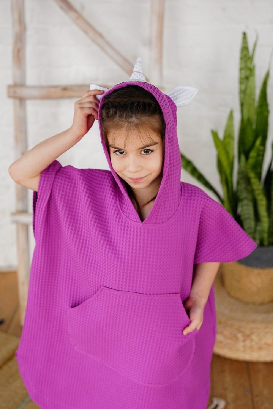 Детское вафельное полотенце - халат в стиле пончо с капюшоном для мальчика или девочки в универсальном размере (на рост 98-122 см). Идеально после ванны, душа, уроков плавания в бассейне и в качестве банного полотенца дома, на пляже и в аквапарке. Для изготовления детского халатика используется качественное вафельное полотно из 100% хлопка - изделие максимально безопасно для нежной детской кожи. Банная накидка для малышей выполнена цельнокроеной - просто наденьте ее через голову и позвольте ребенку насладиться мягкостью и теплом натурального хлопка! В отличие от обычного полотенца пончо не сковывает движения, кроха может играть и веселиться сразу же после водных процедур. Яркие расцветки и декоративные элементы в виде аппликаций с мордочками забавных зверят на капюшоне вызывают у ребенка положительные эмоции и поднимают настроение у всех членов семьи. Пончо из вафли может стать запоминающимся подарком дочке, сыночку, внучке или внуку к любому празднику! Дизайны на выбор: Желтая Акула, Фуксия Единорог.