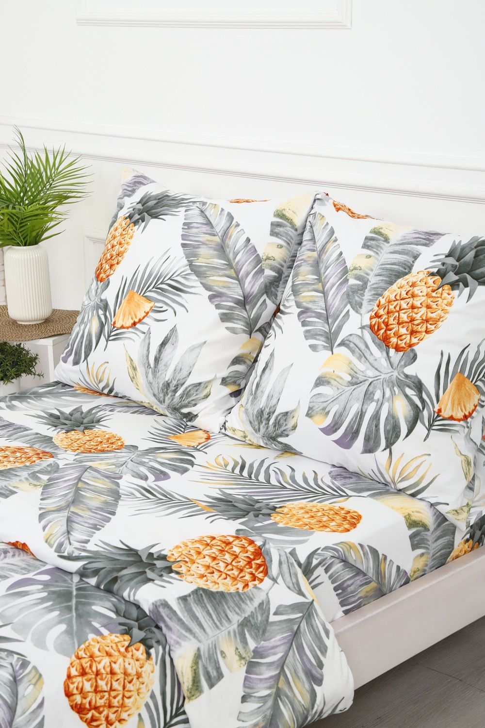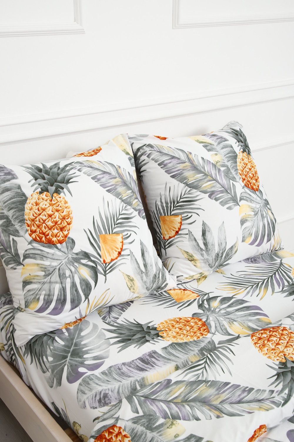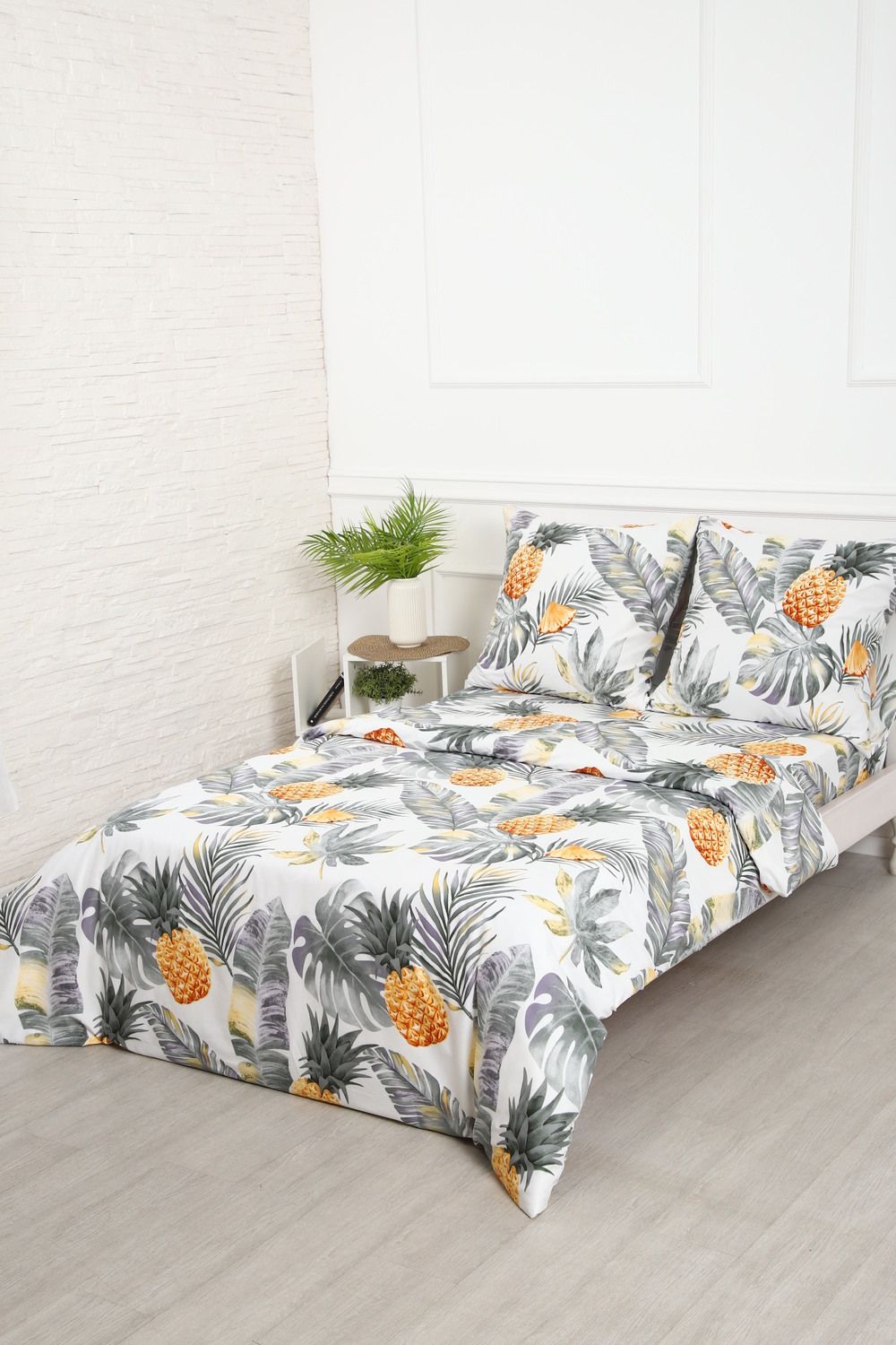 Комплект постельного белья "С листьями ананасы" - современный дизайн, создающий уютную свежесть и комфорт в вашей спальне.