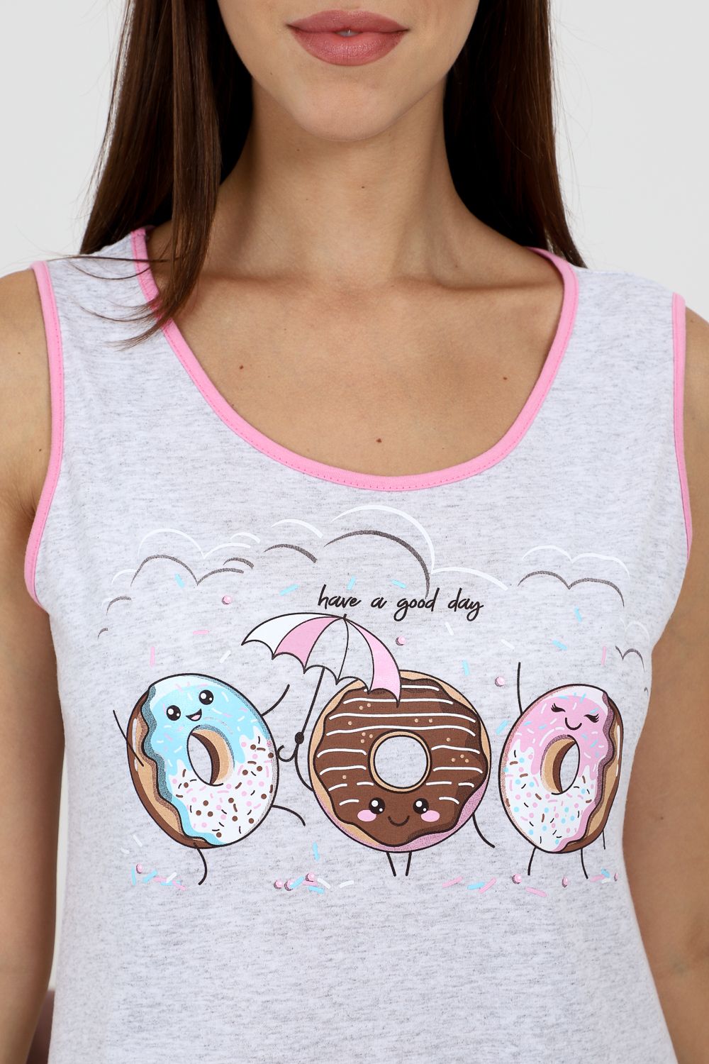Сорочка женская из кулирного полотна, прямого кроя, горловина круглая, низ обработан на плоскошовной машине, на полочке принт. Натуральный состав обеспечит вам комфорт. Изделие идеально подходит для повседневного использования, легкий уход. Цвет окантовки может отличаться