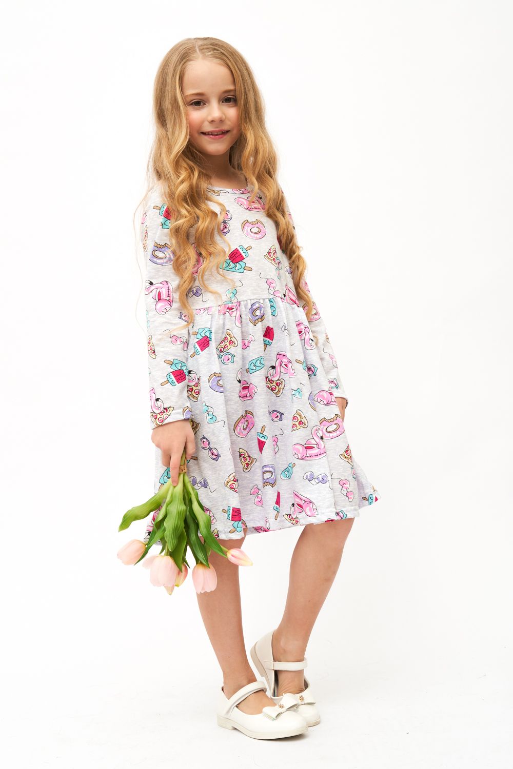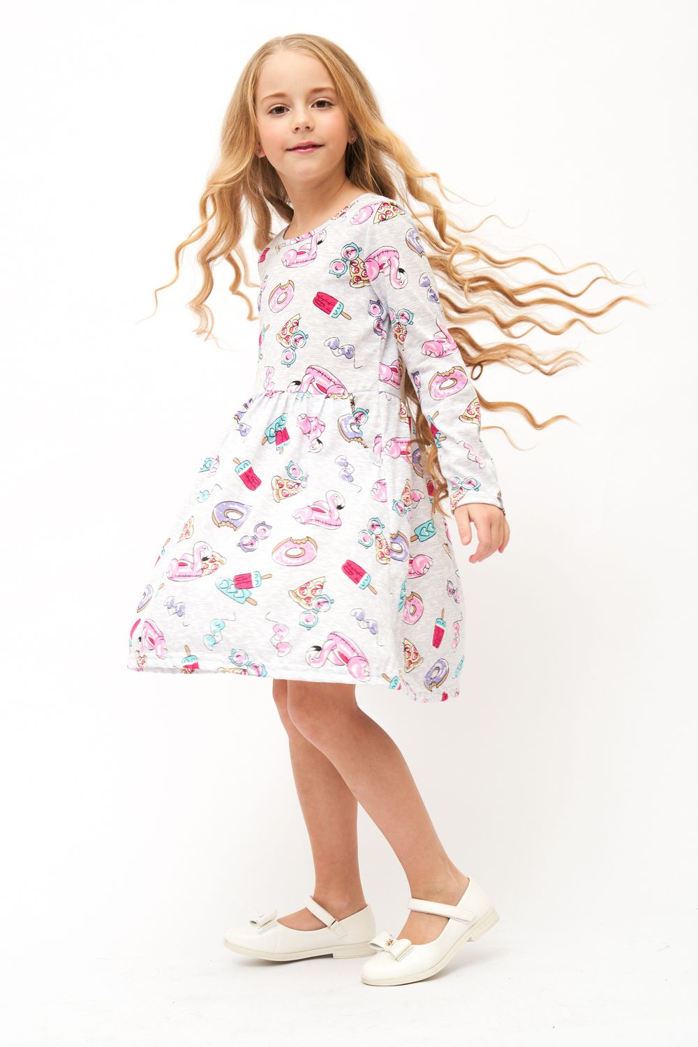 Платье для юных модниц в светлой расцветке с насыщенными рисунками в приятных тонах.