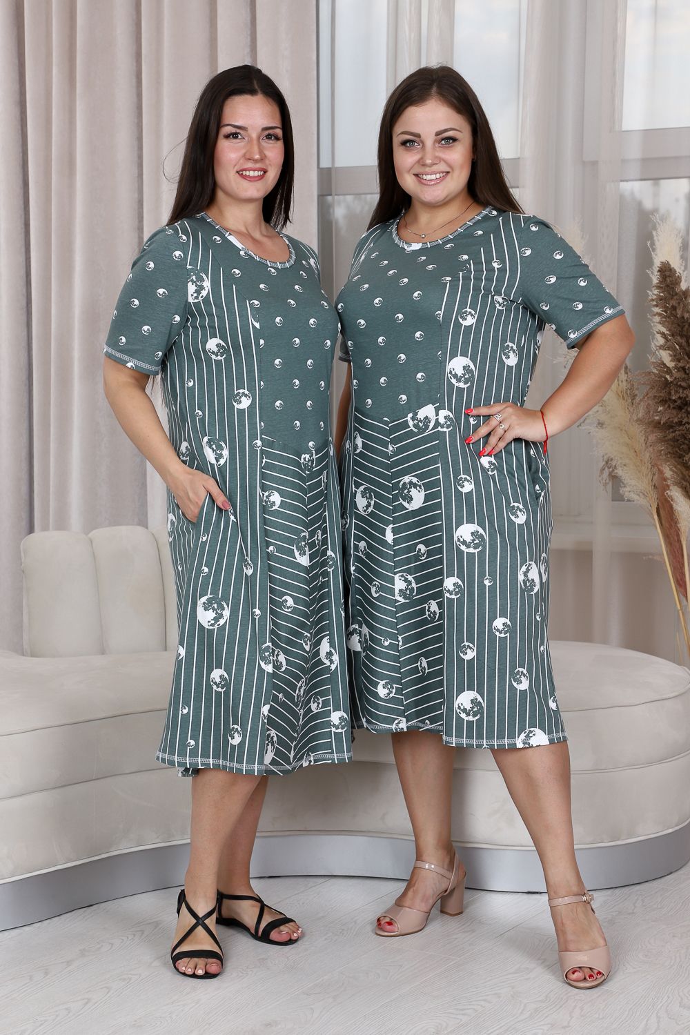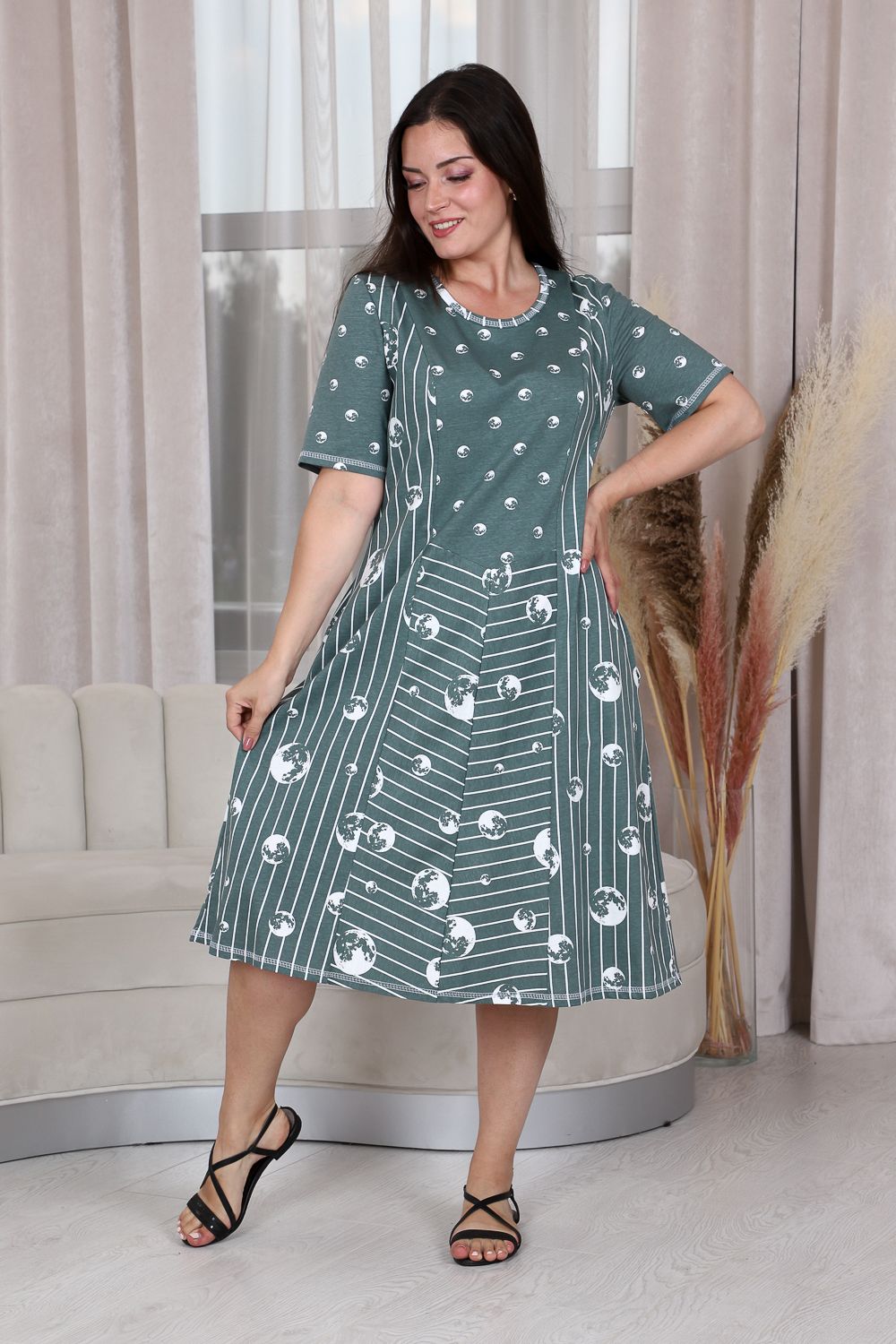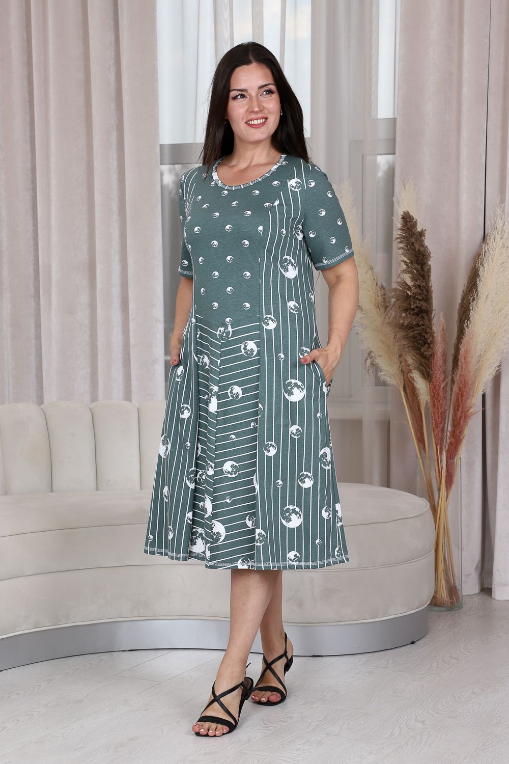Платье женское полуприлегающего силуэта, расширенное к низу. Рукав втачной короткий. В боковых швах внутренние карманы. Полочка и спинка состоит из нескольких частей, из тканей - компаньонов.