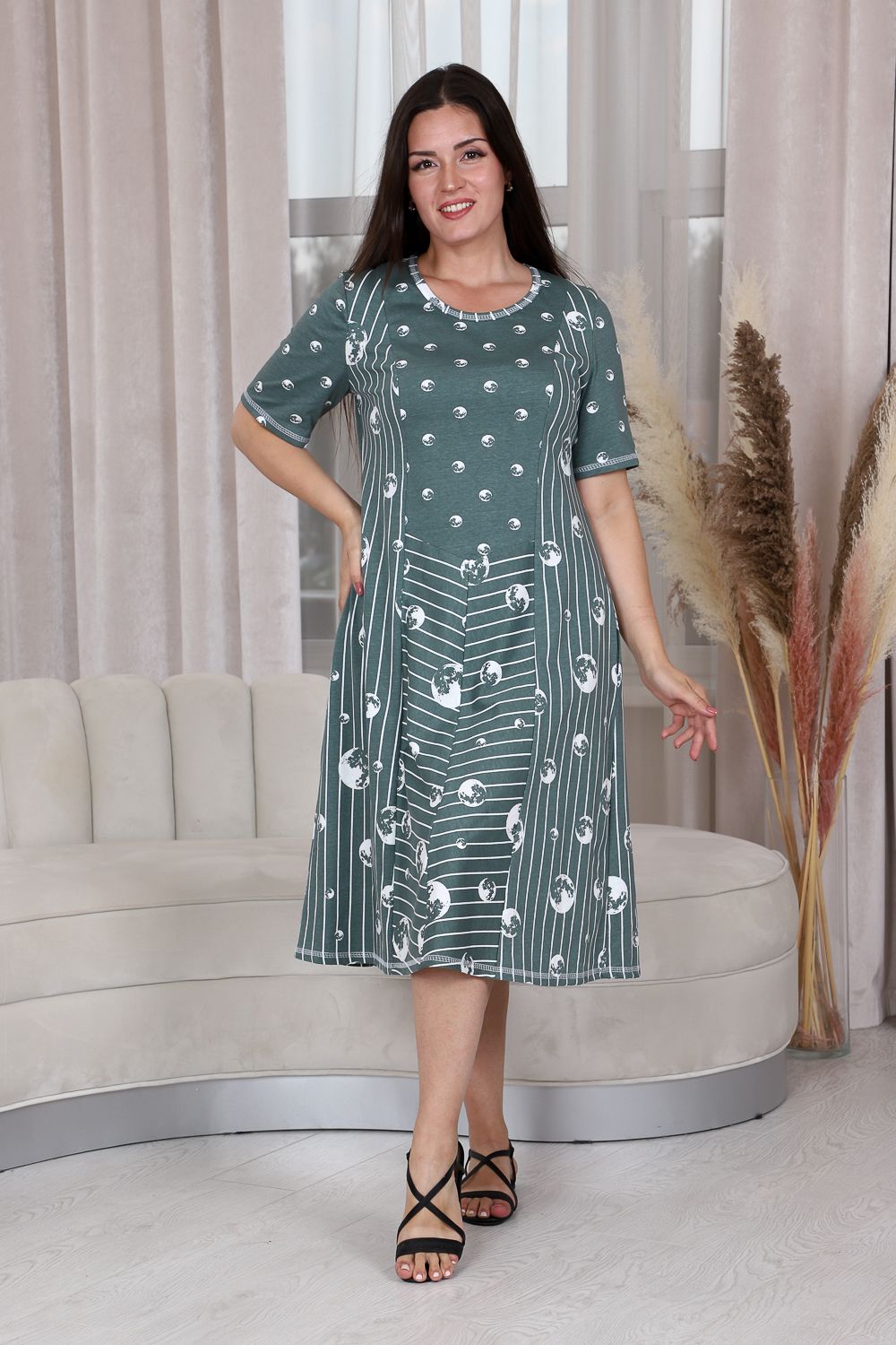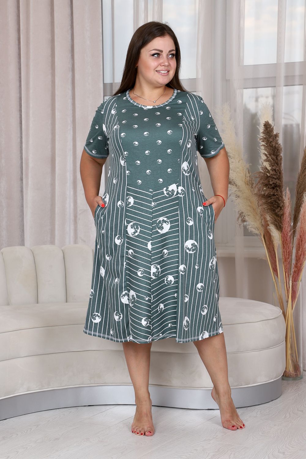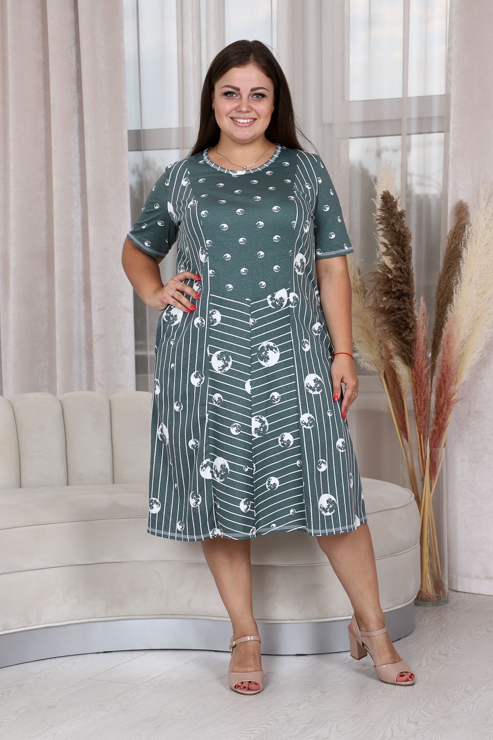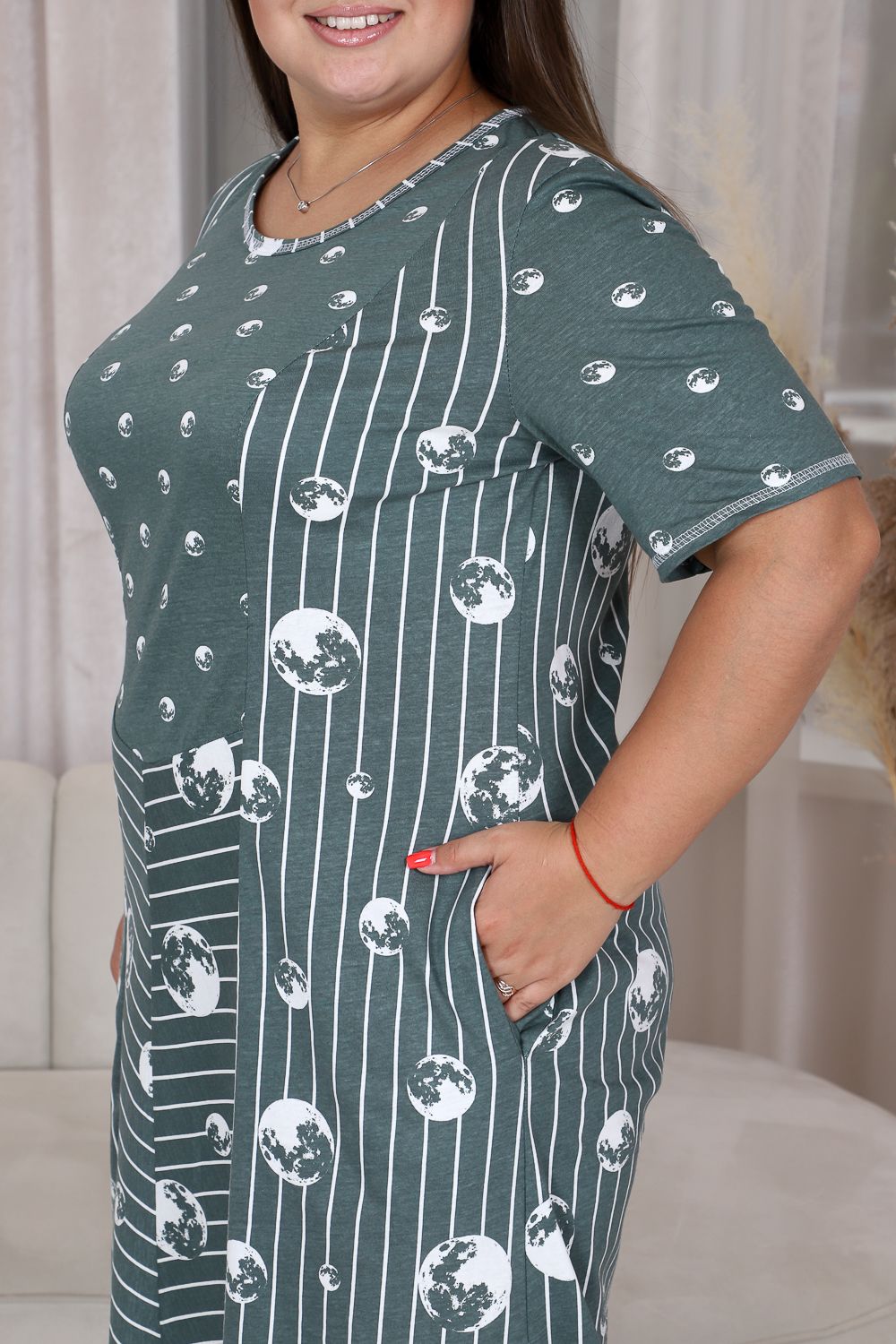 Платье женское полуприлегающего силуэта, расширенное к низу. Рукав втачной короткий. В боковых швах внутренние карманы. Полочка и спинка состоит из нескольких частей, из тканей - компаньонов.