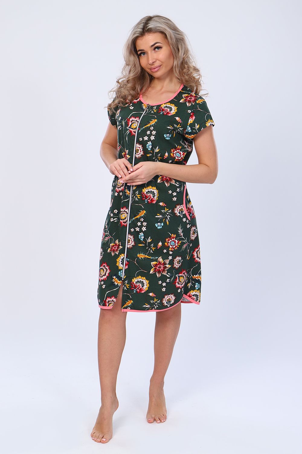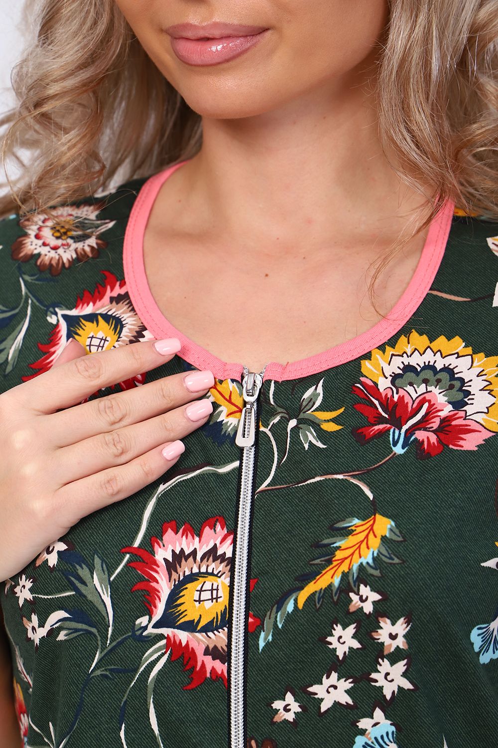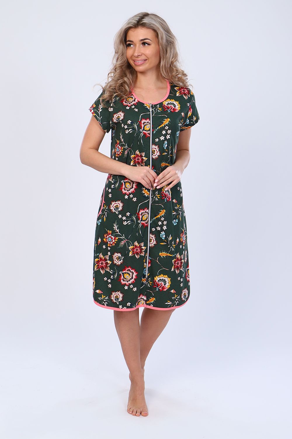 Халат женский на молнии. Короткий рукав. Горловина, карман и низ изделия обработан бейкой. Данная модель прекрасно подойдет как для дома, дачи и отдыха, создавая по-настоящему теплую атмосферу и женственный образ.