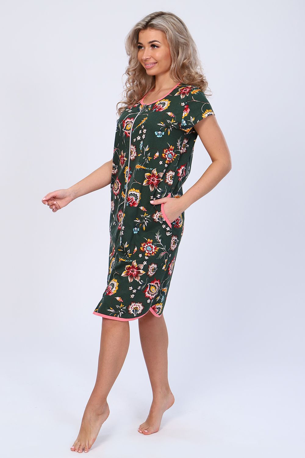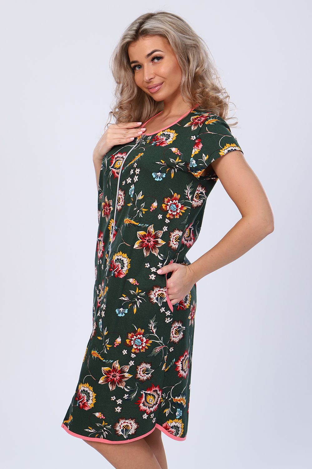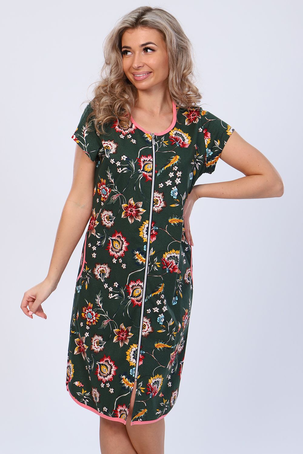 Халат женский на молнии. Короткий рукав. Горловина, карман и низ изделия обработан бейкой. Данная модель прекрасно подойдет как для дома, дачи и отдыха, создавая по-настоящему теплую атмосферу и женственный образ.