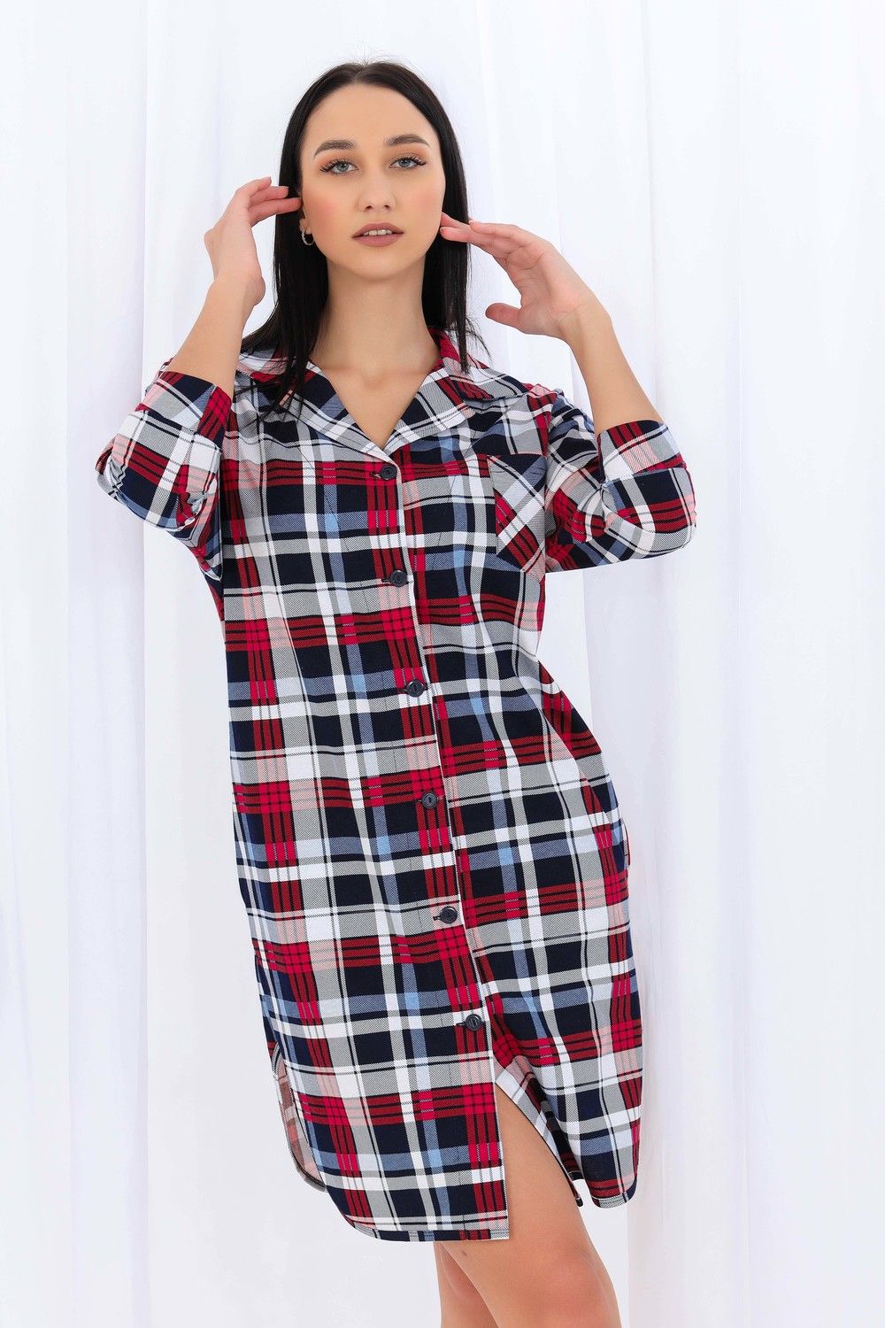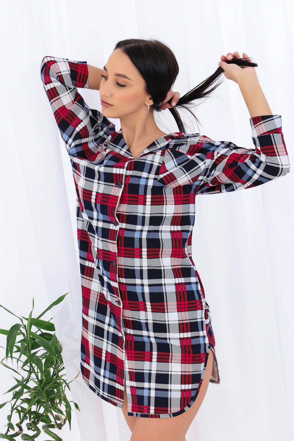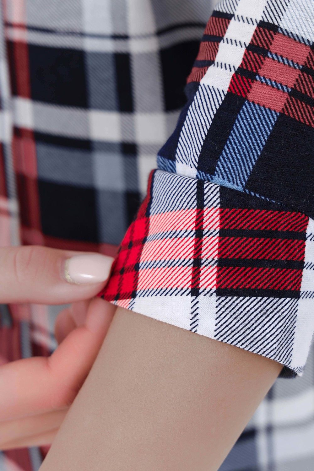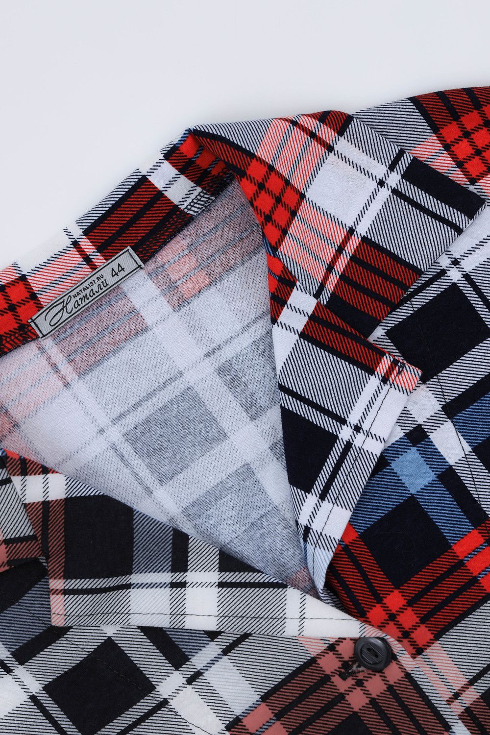 Халат на пуговицах свободного рубашечного кроя. Спущенная пройма. Рукава с манжетами. На груди карман. Низ халата обработан широкой бейкой. Длина рукава в замерах указана от точки основания шеи. Модная в этом сезоне клетка не оставит Вас без внимания, а свободный крой позволит чувствовать себя комфортно и уверенно.