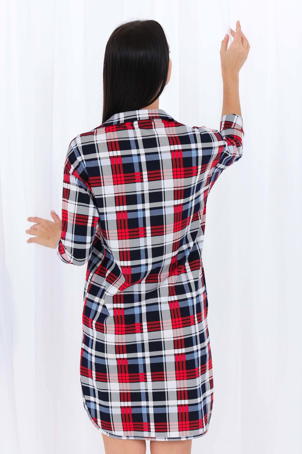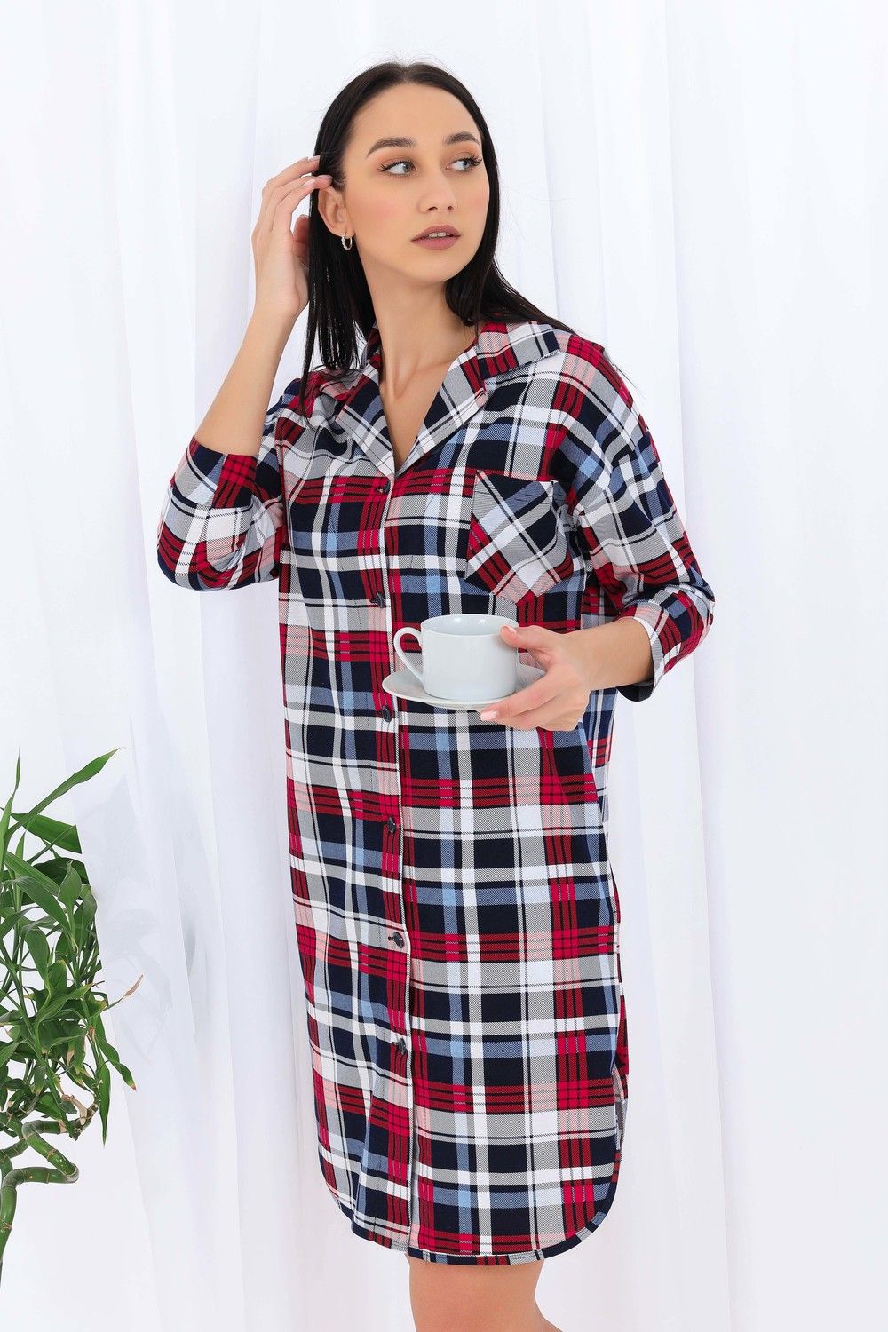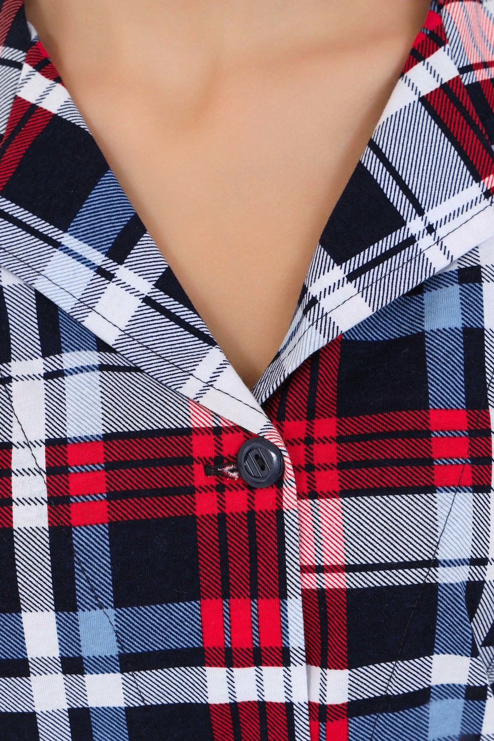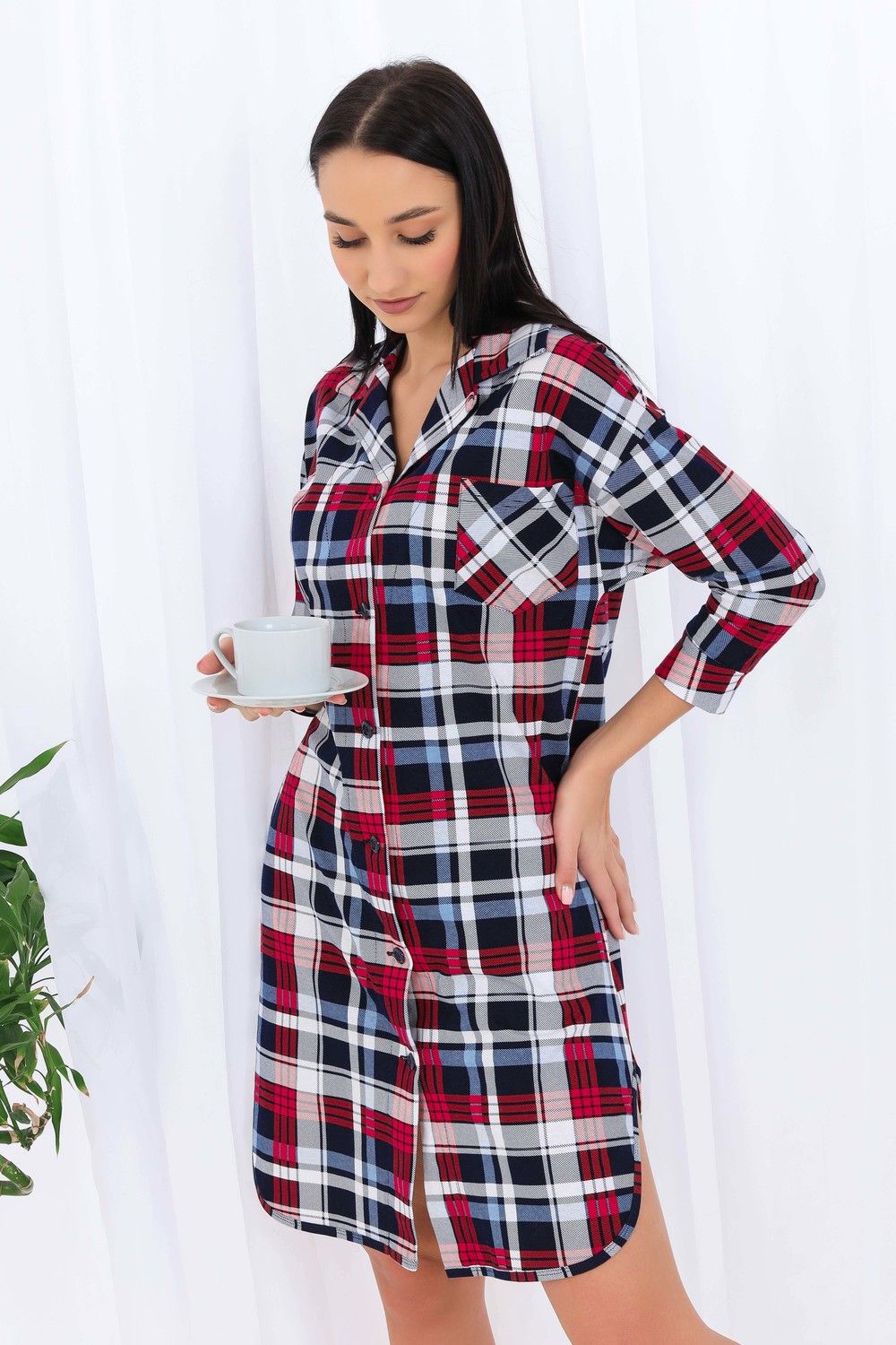 Халат на пуговицах свободного рубашечного кроя. Спущенная пройма. Рукава с манжетами. На груди карман. Низ халата обработан широкой бейкой. Длина рукава в замерах указана от точки основания шеи. Модная в этом сезоне клетка не оставит Вас без внимания, а свободный крой позволит чувствовать себя комфортно и уверенно.