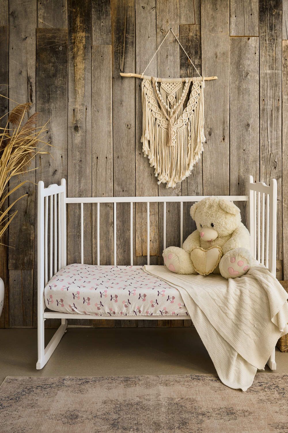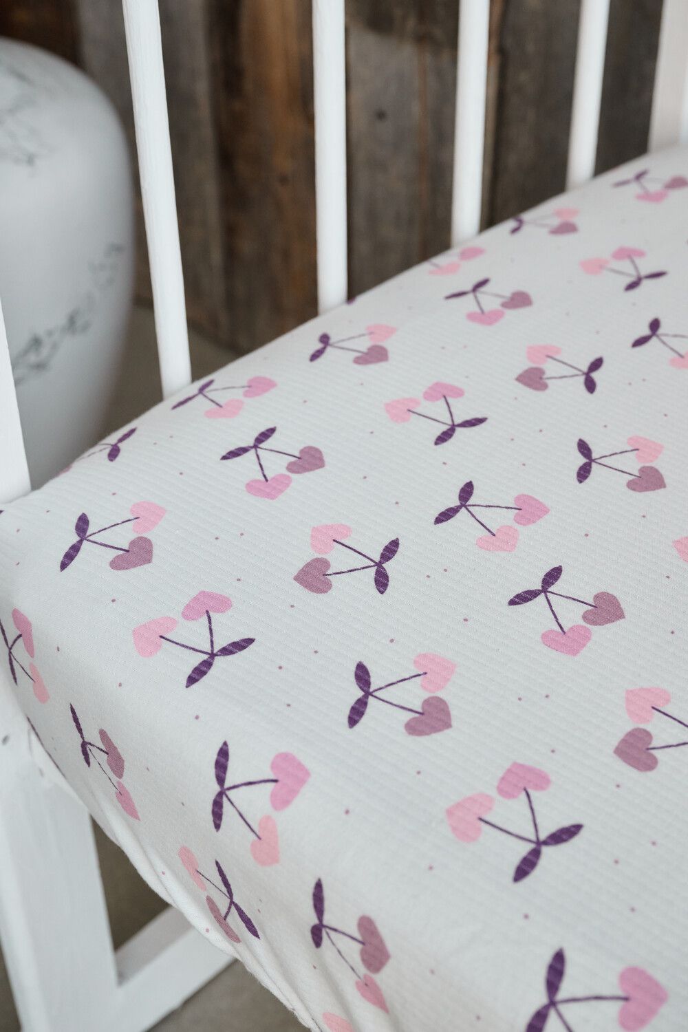 Простынь на резинке детская 120*60 для новорожденных - вишни