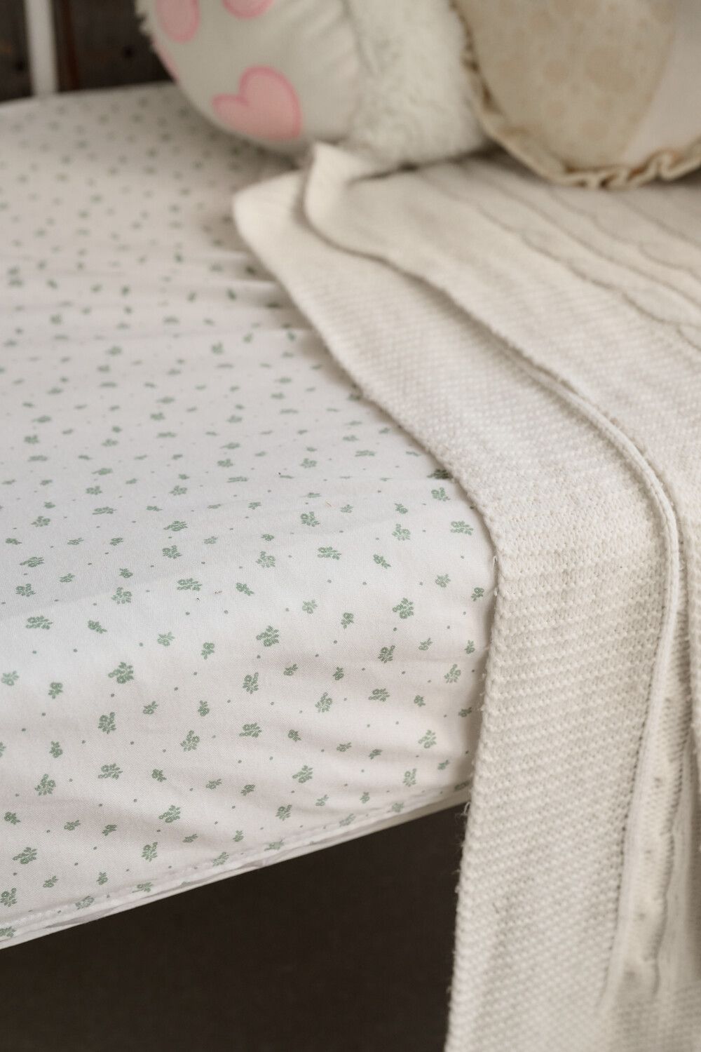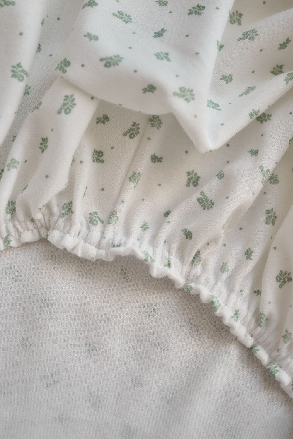 Простынь на резинке детская 120*60 для новорожденных - зеленые цветы