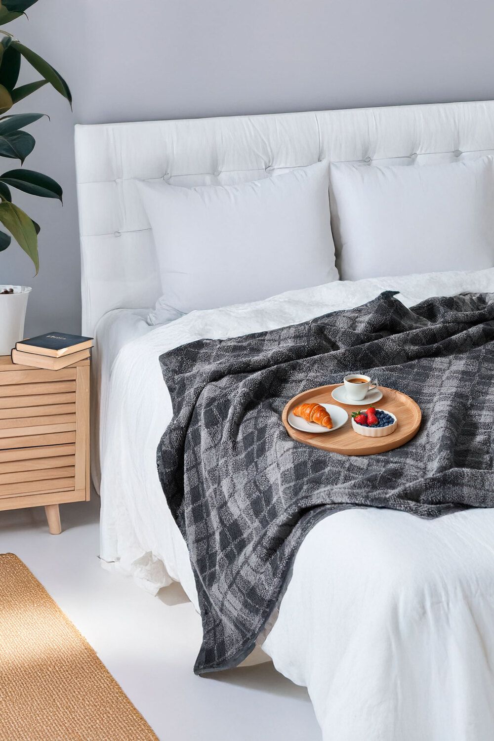 Простыня махровая 1,5 спальная 150х200 см хлопковая пестротканая в клетку - универсальный элемент постельного белья, соединяющий функции легкого одеяла, хлопкового покрывала, мягкого пледа, пляжного покрывала, большого махрового полотенца, простыни для бани и сауны. Коллекция домашнего текстиля из махры – тренд летнего сезона. Экологичный состав из 100% хлопка. Плотность - 420 г/м2. Простынь махровая хорошо впитывает влагу и свободно пропускает воздух, позволяя телу дышать. Постельное белье из махровой ткани приятно согревает, сохраняя естественный режим терморегуляции, не вызывает аллергии и раздражения кожи, обладает мягким массажным эффектом. Такой удобный махровый плед согреет прохладной ночью, при этом под ним не жарко. Прекрасный вариант для тех, кто не любит теплые одеяла. Палитра цветов предлагает оттенки для холодных и теплых интерьеров, квартир с разными дизайнами от классического до лофта. Отсутствие синтетических волокон делает изделие гипоаллергенным и подходящим для чувствительной кожи, в том числе для детей. Благодаря натуральному составу простыня подойдет в качестве детского покрывала в кроватку и коляску. В нашу простыню так приятно закутаться во время отдыха на кровати, на диване, в кресле, можно взять с собой в дорогу, в командировку, беременным женщинам в роддом. Клетчатый плед подойдет для отдыха на даче или в загородном доме, идеальный вариант для гостиниц, отелей, гостиных домов, хостелов. Простынь согреет во время массажа или косметической процедуры в массажном салоне, в салоне красоты, после spa. Можно постелить на шезлонг на пляже, на лежак в сауне и парной, использовать вместо полотенца 150х200 см, банного халата, парео, килта после ванной, душа, джакузи, плавания в бассейне, купания в водоеме. Полезный подарок всем тем, кто занимается ремонтом и благоустройством дома, строительством бани и дачи, подбором товаров для сада, пикника, кемпинга, туризма, отдыха на природе, Изделие выдерживает частые стирки, не требует глажки и особого хранения. Сувенир в виде качественного текстиля принесет радостные эмоции и позволит раствориться в домашнем уюте! Одеяльце может стать частью подарочного набора или комплекта постельного белья для взрослых и детей. Стильное и элегантное махровое покрывало в крупную клетку будет долгие годы украшать Вашу спальную комнату и делать каждое утро добрым! В нашем магазине действуют выгодные цены и скидки, рекомендуем следить за новинками и распродажами!