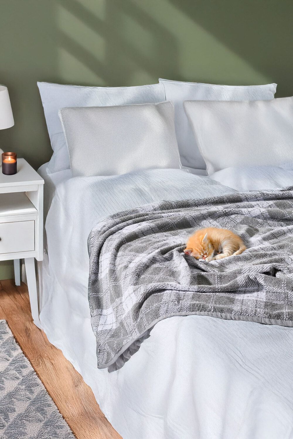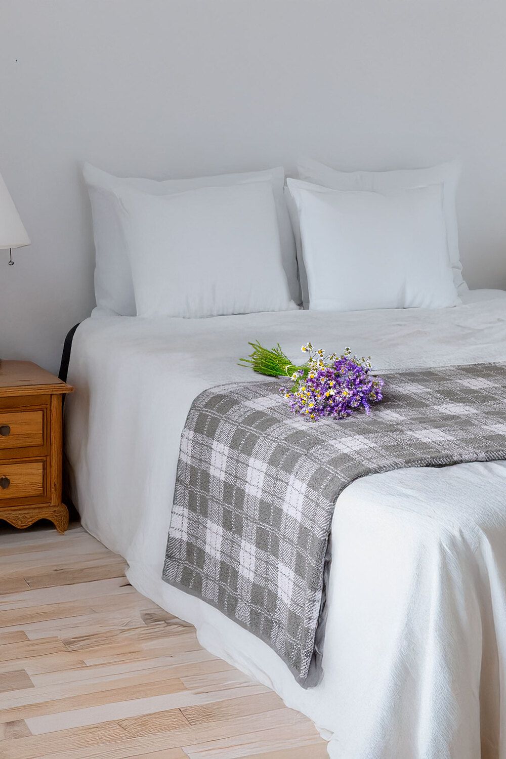Простыня махровая 1,5 спальная 150х200 см хлопковая пестротканая в клетку - универсальный элемент постельного белья, соединяющий функции легкого одеяла, хлопкового покрывала, мягкого пледа, пляжного покрывала, большого махрового полотенца, простыни для бани и сауны. Коллекция домашнего текстиля из махры – тренд летнего сезона. Экологичный состав из 100% хлопка. Плотность - 420 г/м2. Простынь махровая хорошо впитывает влагу и свободно пропускает воздух, позволяя телу дышать. Постельное белье из махровой ткани приятно согревает, сохраняя естественный режим терморегуляции, не вызывает аллергии и раздражения кожи, обладает мягким массажным эффектом. Такой удобный махровый плед согреет прохладной ночью, при этом под ним не жарко. Прекрасный вариант для тех, кто не любит теплые одеяла. Палитра цветов предлагает оттенки для холодных и теплых интерьеров, квартир с разными дизайнами от классического до лофта. Отсутствие синтетических волокон делает изделие гипоаллергенным и подходящим для чувствительной кожи, в том числе для детей. Благодаря натуральному составу простыня подойдет в качестве детского покрывала в кроватку и коляску. В нашу простыню так приятно закутаться во время отдыха на кровати, на диване, в кресле, можно взять с собой в дорогу, в командировку, беременным женщинам в роддом. Клетчатый плед подойдет для отдыха на даче или в загородном доме, идеальный вариант для гостиниц, отелей, гостиных домов, хостелов. Простынь согреет во время массажа или косметической процедуры в массажном салоне, в салоне красоты, после spa. Можно постелить на шезлонг на пляже, на лежак в сауне и парной, использовать вместо полотенца 150х200 см, банного халата, парео, килта после ванной, душа, джакузи, плавания в бассейне, купания в водоеме. Полезный подарок всем тем, кто занимается ремонтом и благоустройством дома, строительством бани и дачи, подбором товаров для сада, пикника, кемпинга, туризма, отдыха на природе, Изделие выдерживает частые стирки, не требует глажки и особого хранения. Сувенир в виде качественного текстиля принесет радостные эмоции и позволит раствориться в домашнем уюте! Одеяльце может стать частью подарочного набора или комплекта постельного белья для взрослых и детей. Стильное и элегантное махровое покрывало в крупную клетку будет долгие годы украшать Вашу спальную комнату и делать каждое утро добрым! В нашем магазине действуют выгодные цены и скидки, рекомендуем следить за новинками и распродажами!