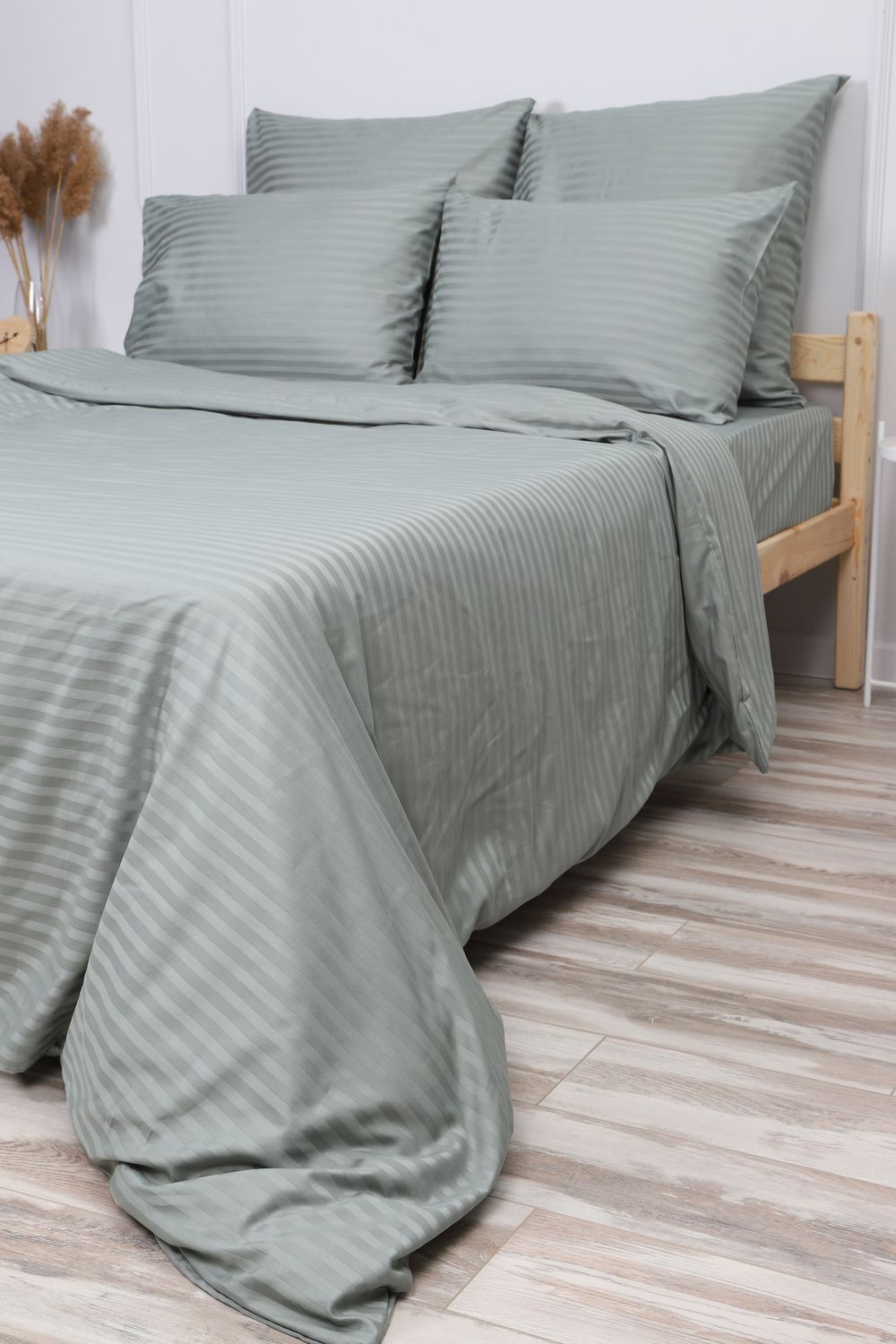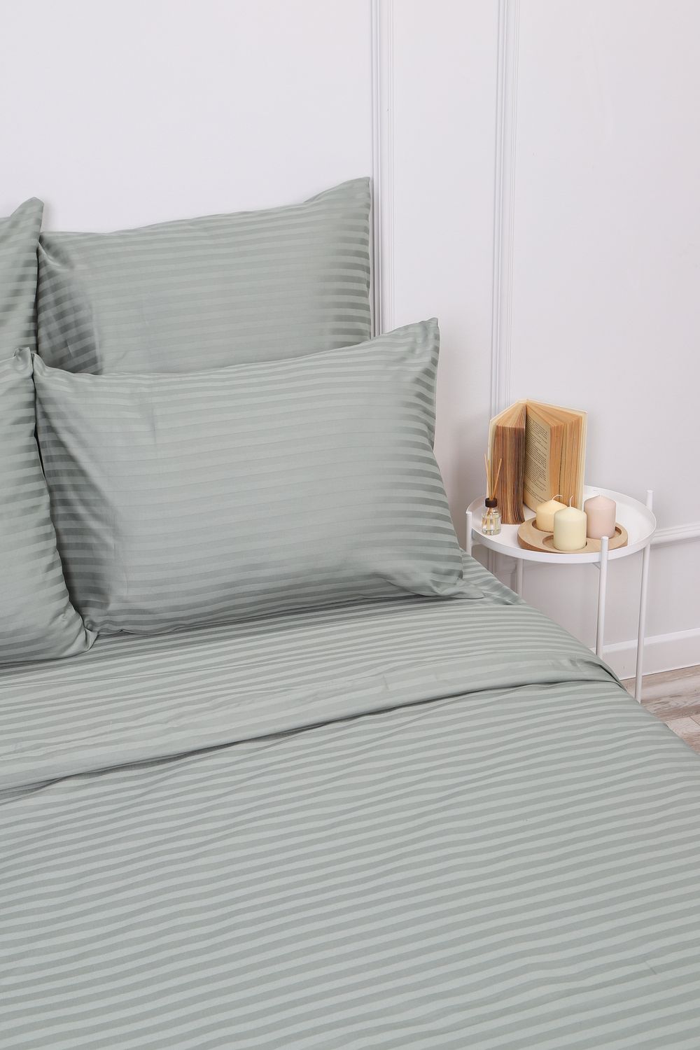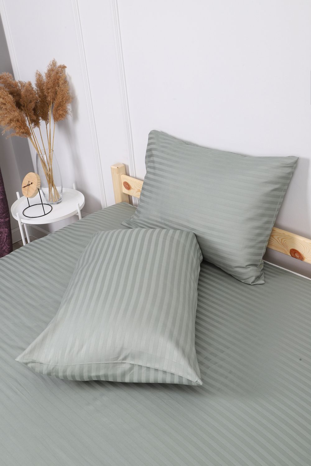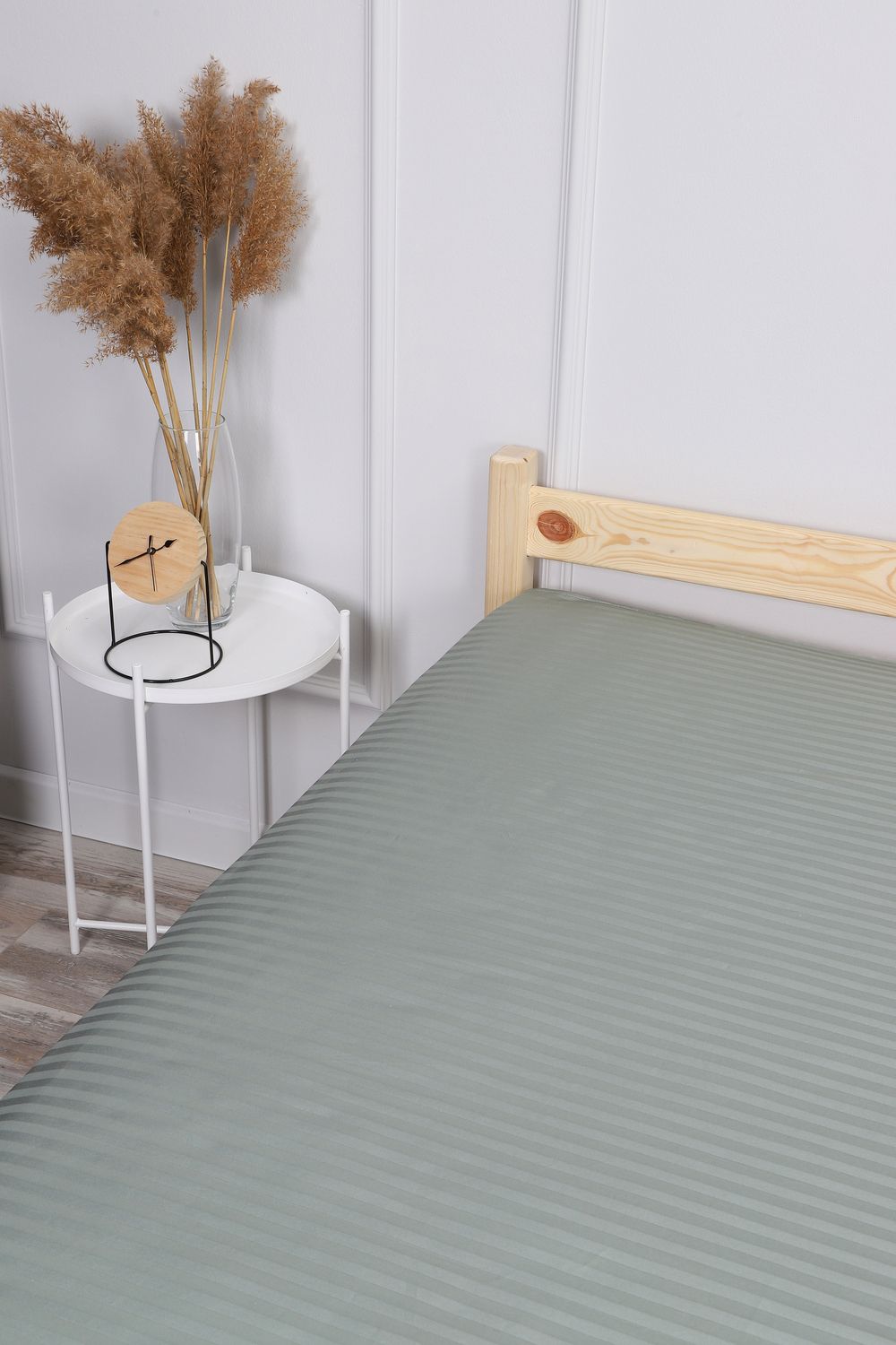 Простыня на резинке из страйп-сатина Комфорт - фисташковый