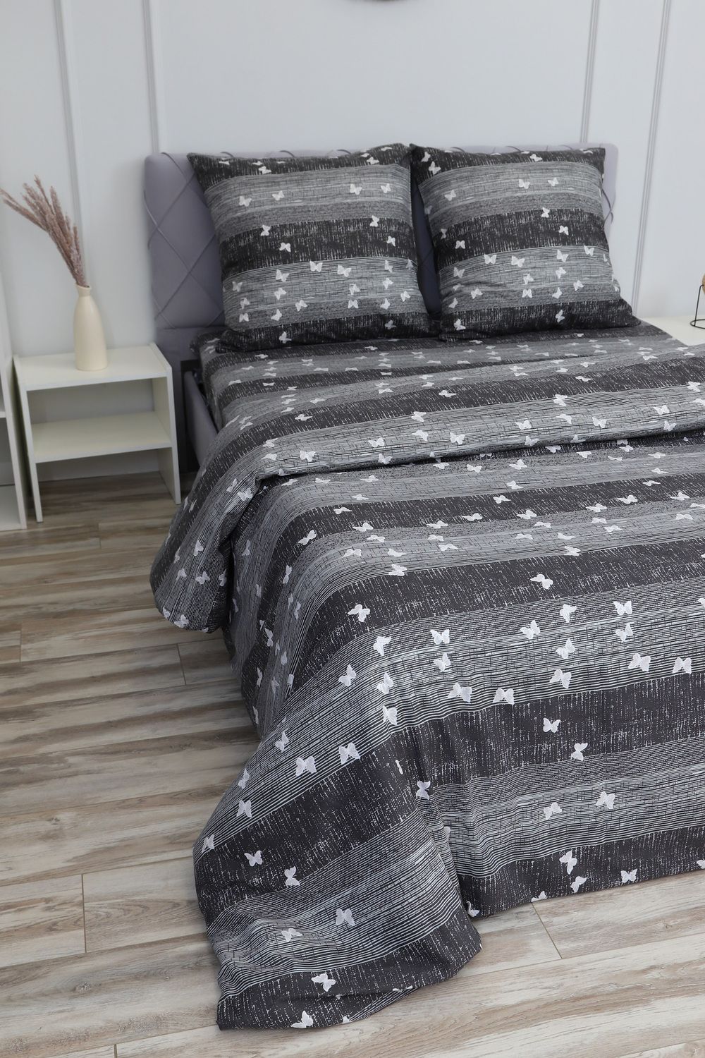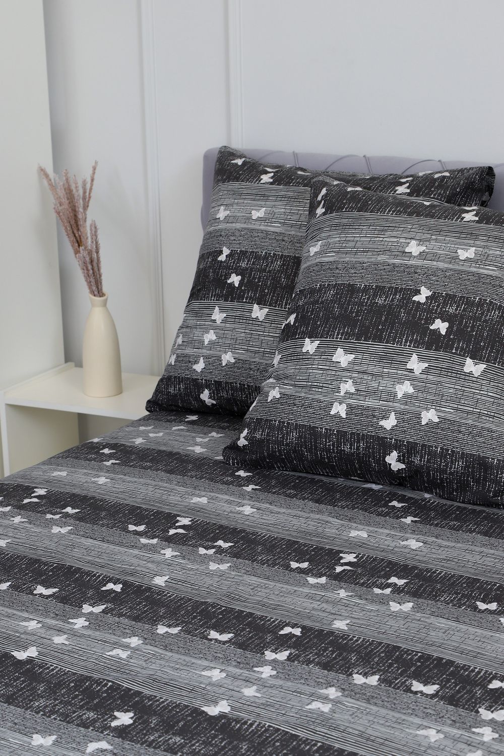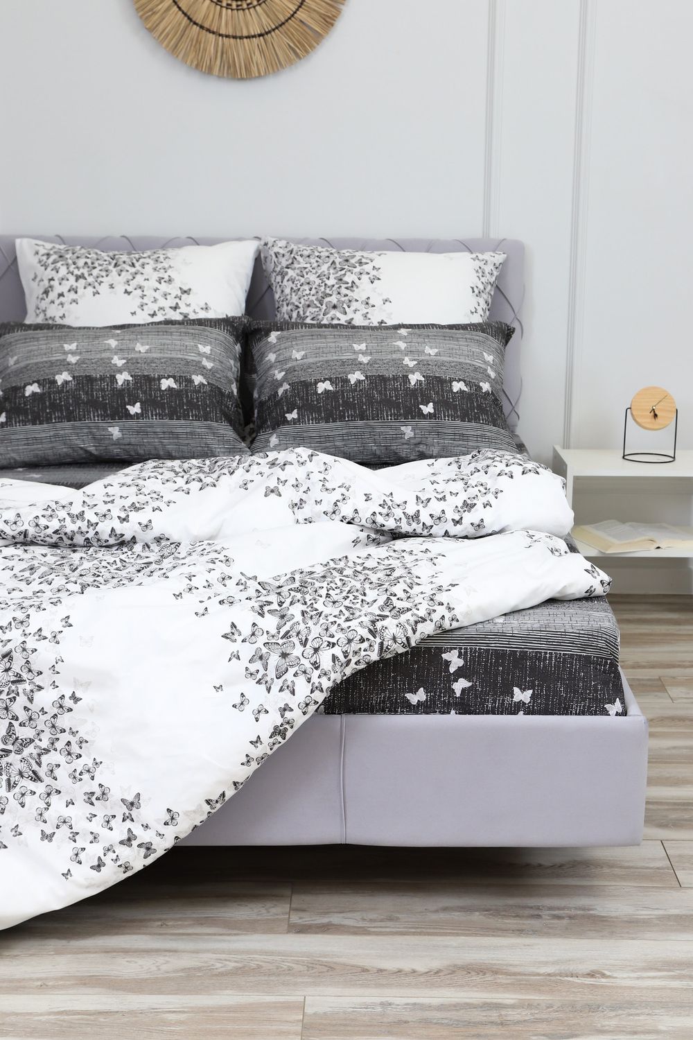Простыня на резинке поплин Бабочки-компаньон - черно-серый