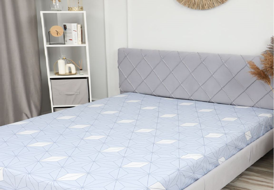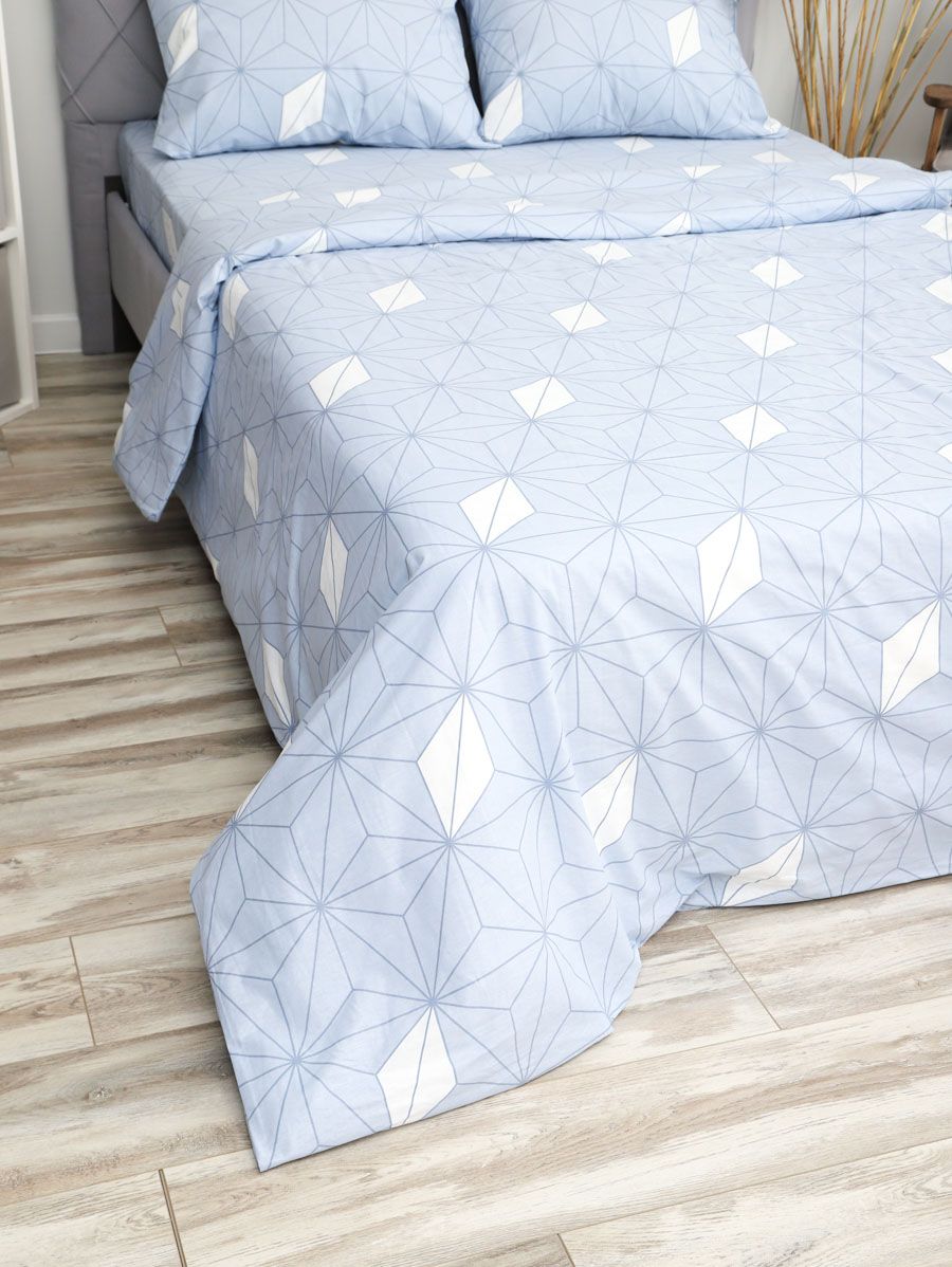 Простыня на резинке поплин Галактика-компаньон - серо-голубой
